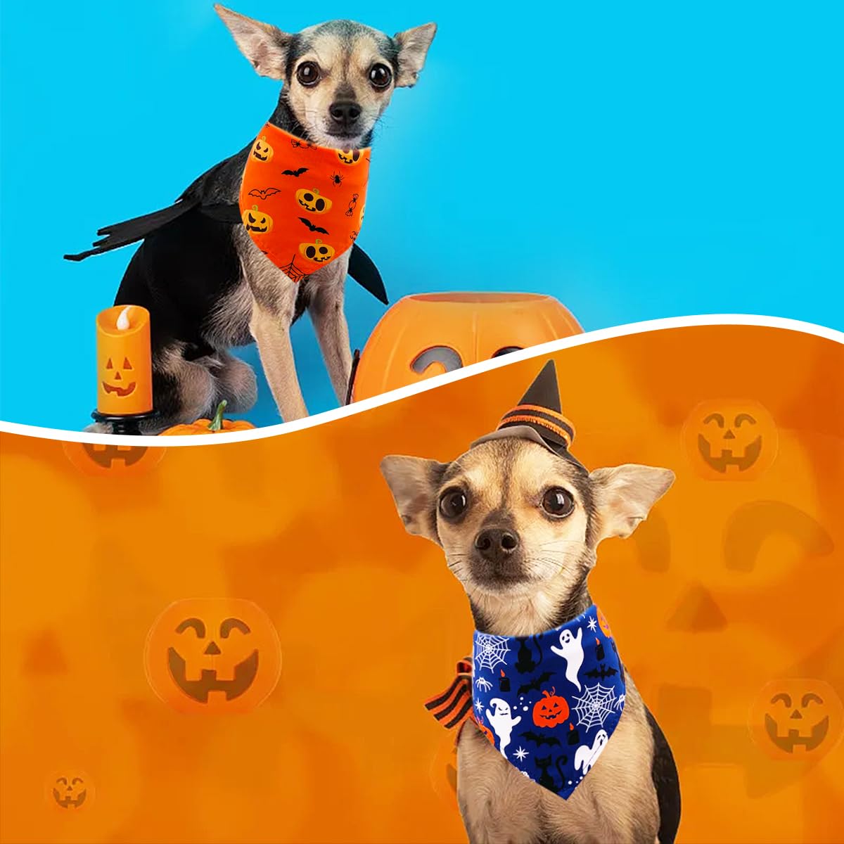 Halloween Dog Scarf: our Halloween dog bandanas are printed with a variety of Halloween designs on the surface, such as pumpkin, bat, ghost and other Halloween elements, full of festive atmosphere, the ideal way to dress up your Halloween Day pet