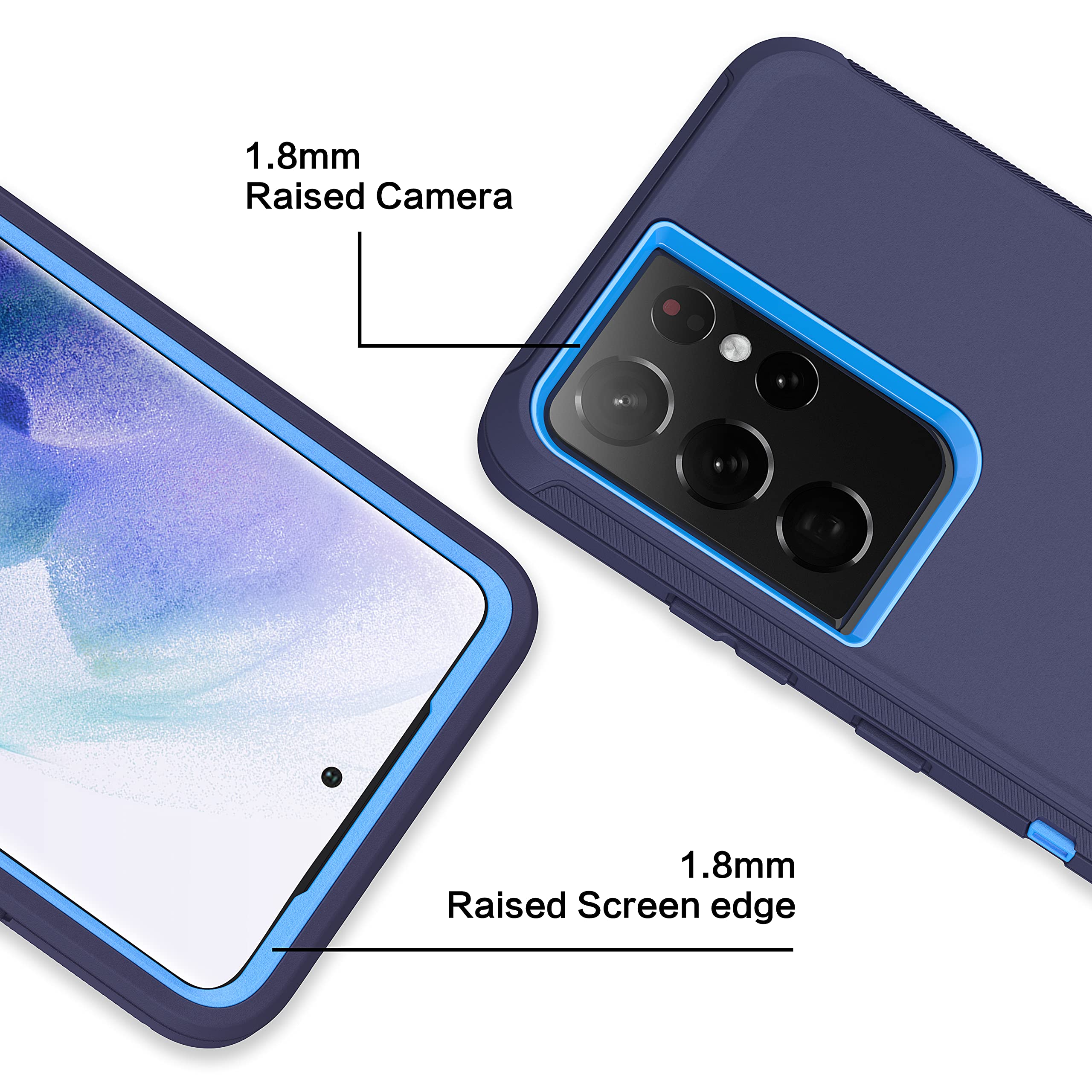 Durability: Samsung S21 Ultra case features a triple-layer defense with an inner shell and rugged outer cover to protect against drops, scratches, bumps, and shocks. The unique detachable design offers 3-in-1 protection, including shock resistance, dust protection, and scratch prevention. Provides reliable protection from impacts, withstanding drops from up to 14 feet on flat ground