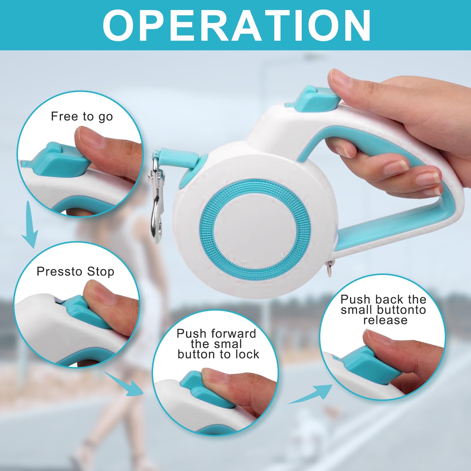 2.Tangle-free 360 degree tape movement.16ft tape leash with easy-adjust retraction that allows your canine pal to explore but still remain within safe distance.Simple, practical and comfortable. A ergonomic handle fits in your hand well for those long walks.