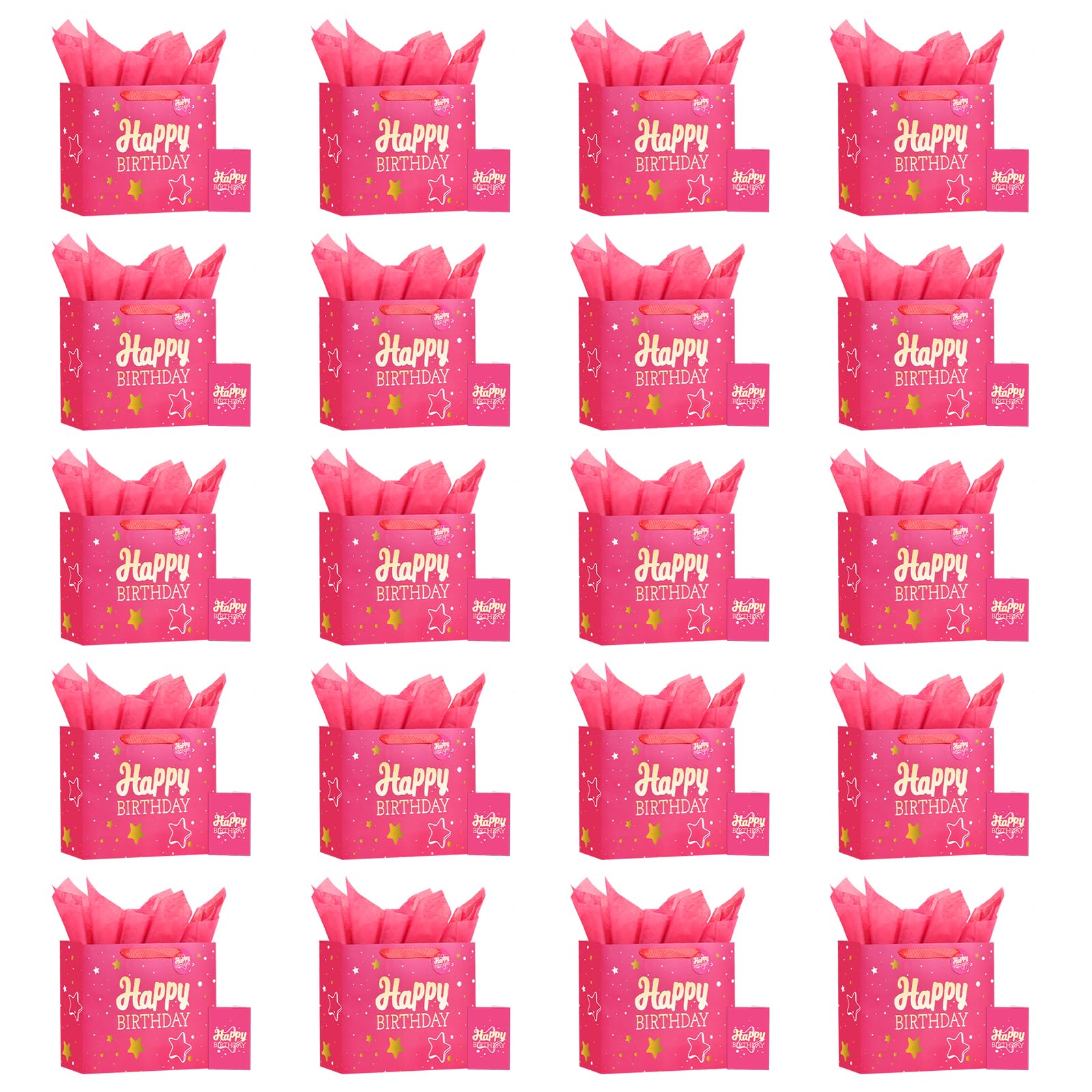 【Happy Birthday Gift Bag】Each gift bag contains 1 card and 2 tissues, The gift bag measures 13" wide × 10.2" high × 4.7" long, and the greeting card measures 7.9" wide × 5.9" high.
