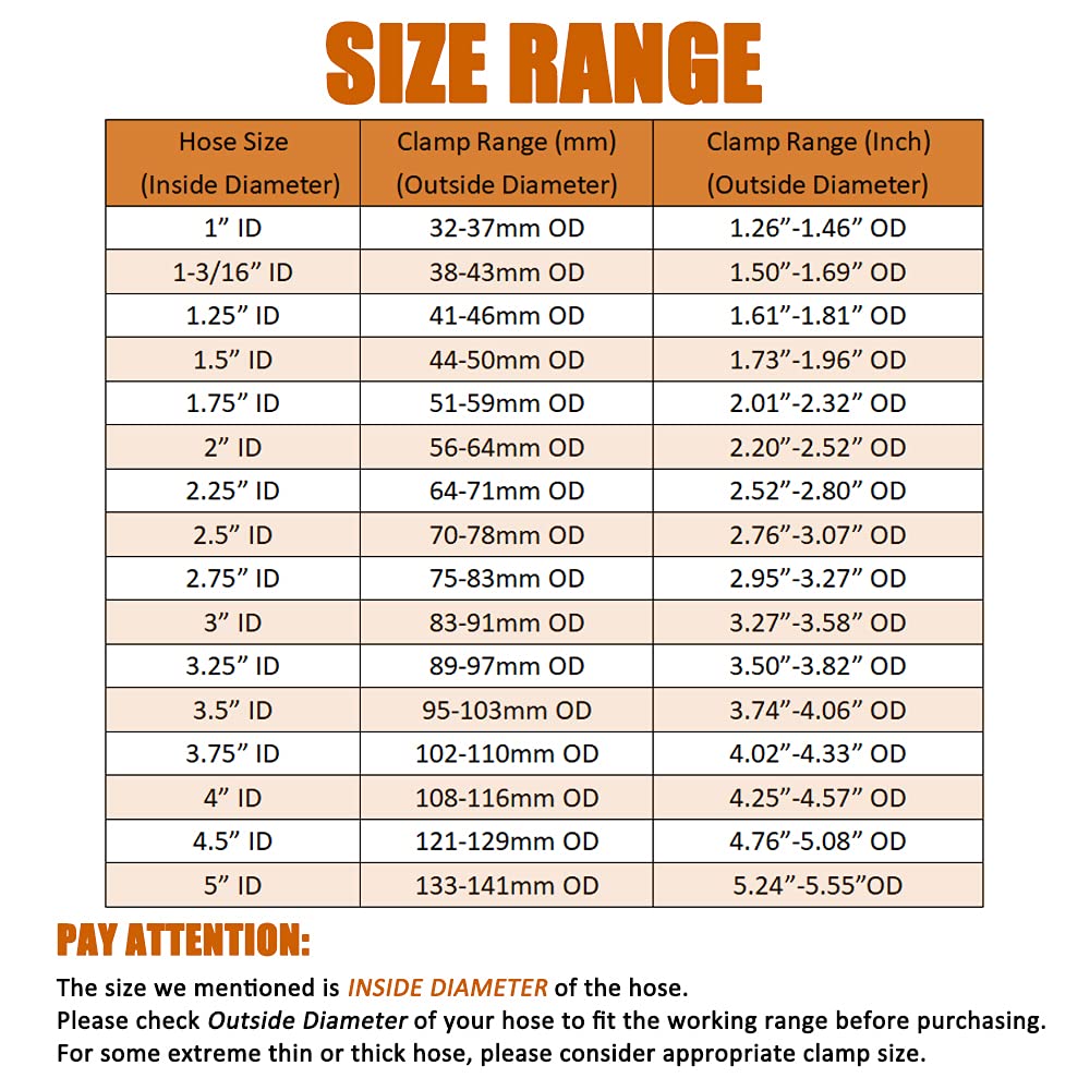 ATTENTION - Used for 1.25" ID hose, better to check your Hose OD to fit the working range before purchasing. For some extreme thin or thick hose, please consider appropriate clamp size.