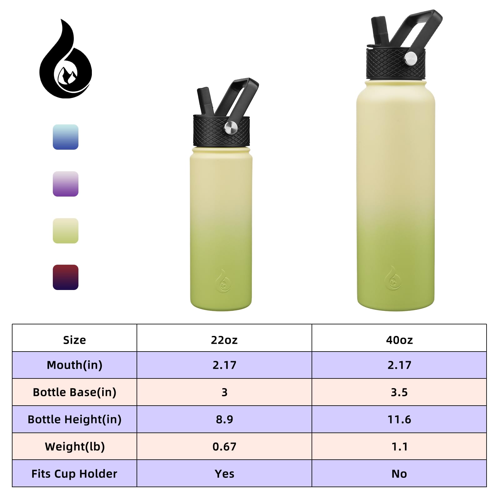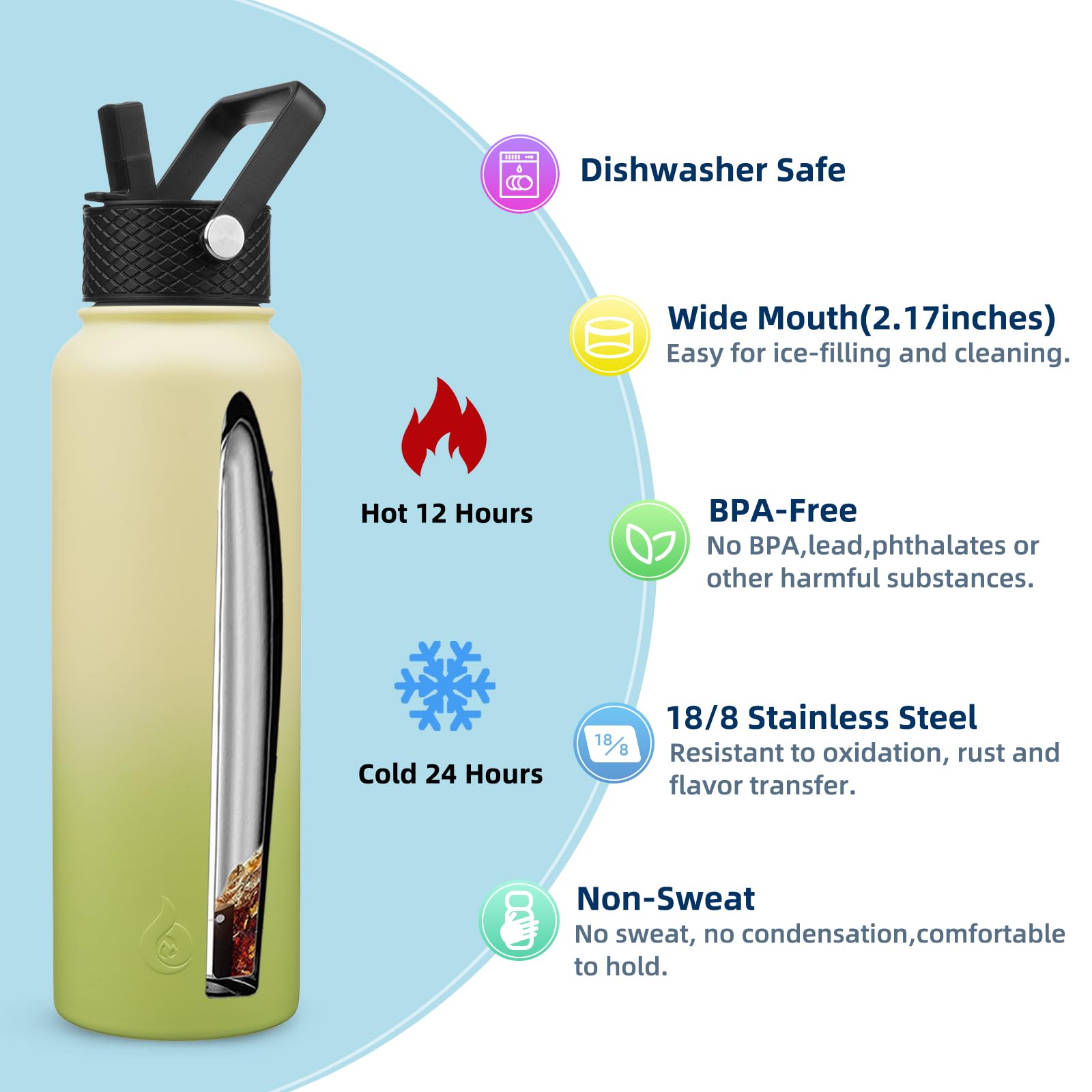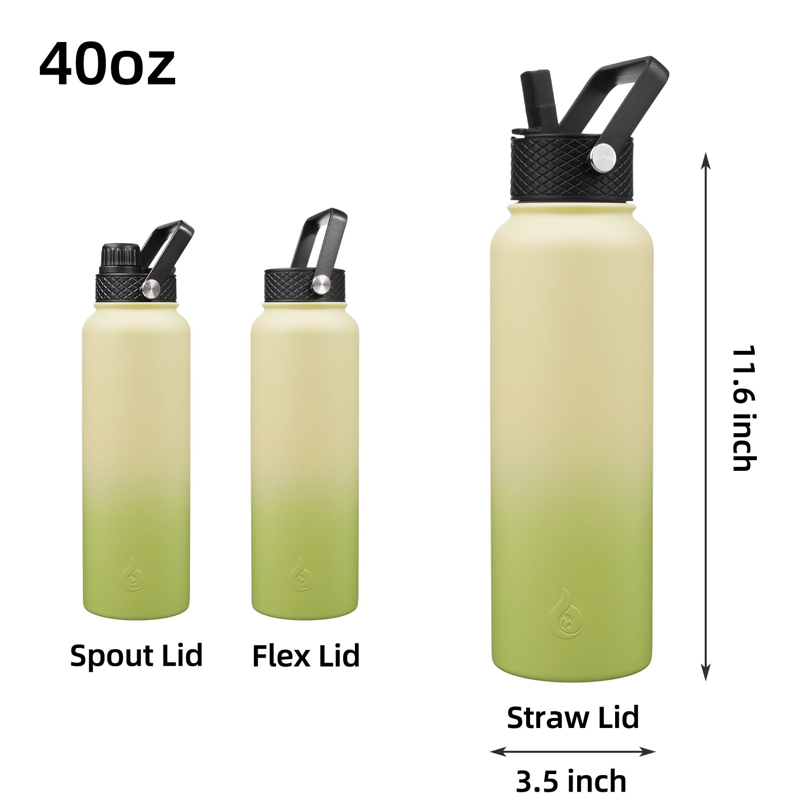 BJPKPK Insulated Water Bottles with Straw Lid, 40oz Cold & Hot Water Bottle, Stainless Steel Metal Water Bottle with 3 Lids, Reusable Thermo, Cups, Mugs for Daily Water Intake-Avocado