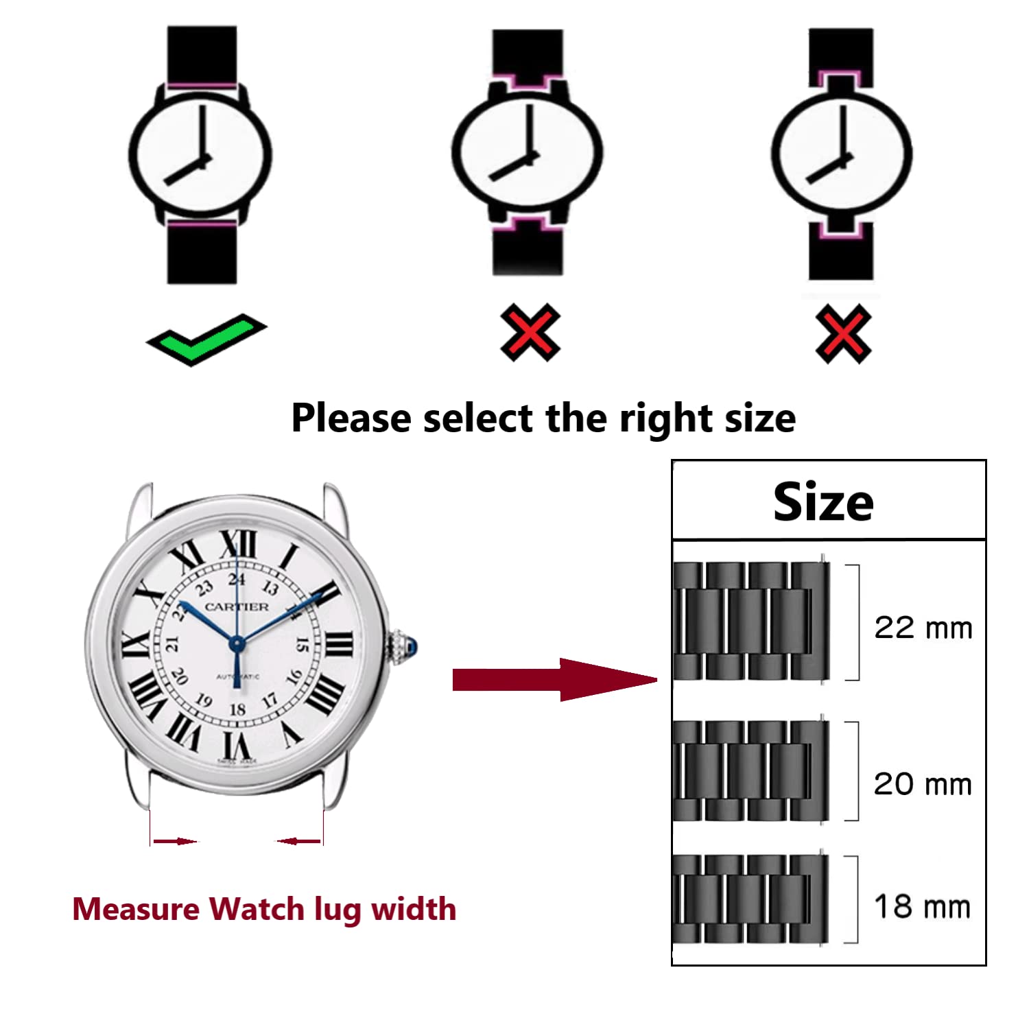 ⭐【Sizing】Fit wrist : 5.5"-8.3" (140mm-210mm ) ; The size of the strap can be easily adjusted by the provided link remover tool, and adjusted according to the size of the individual's wrist to achieve a perfect fit.