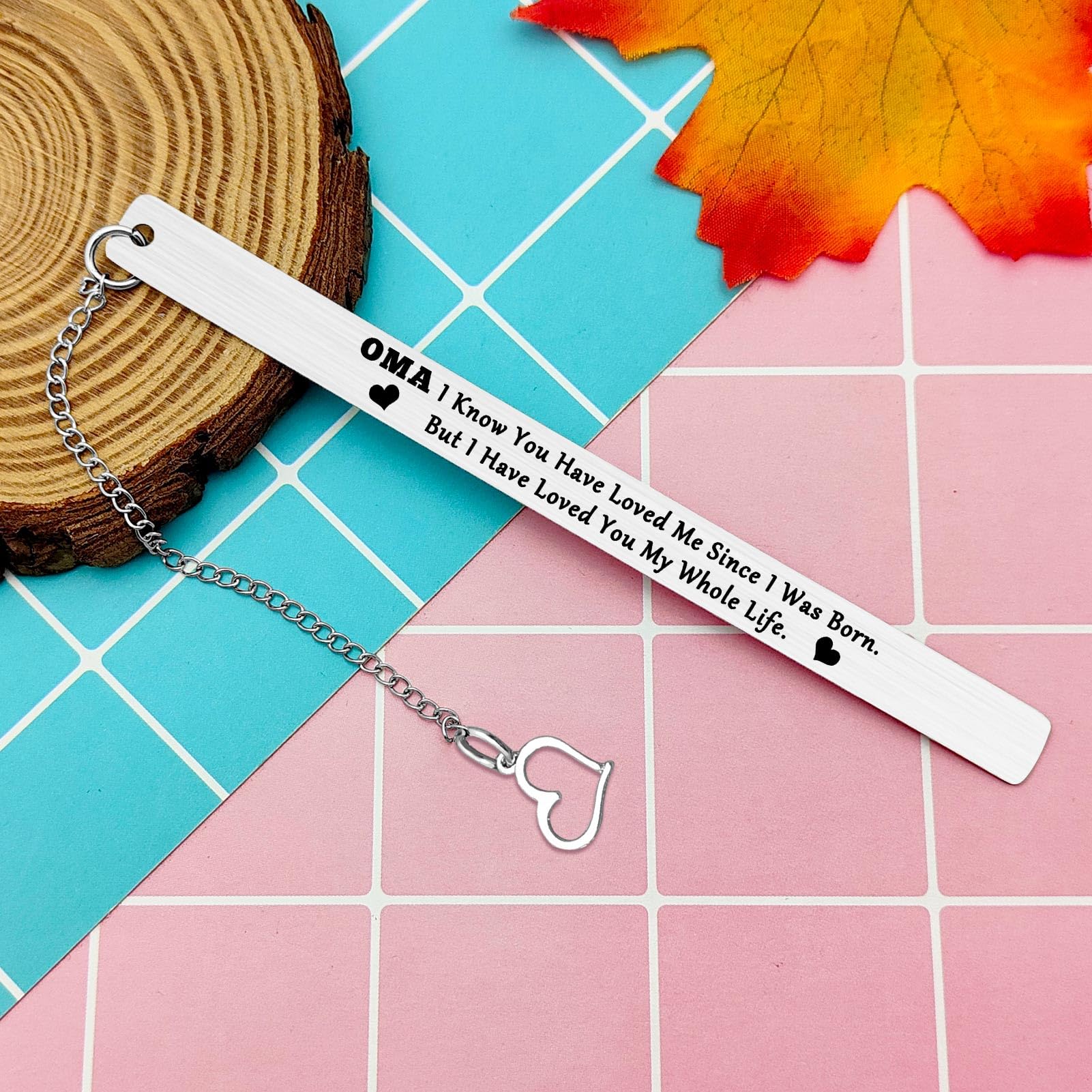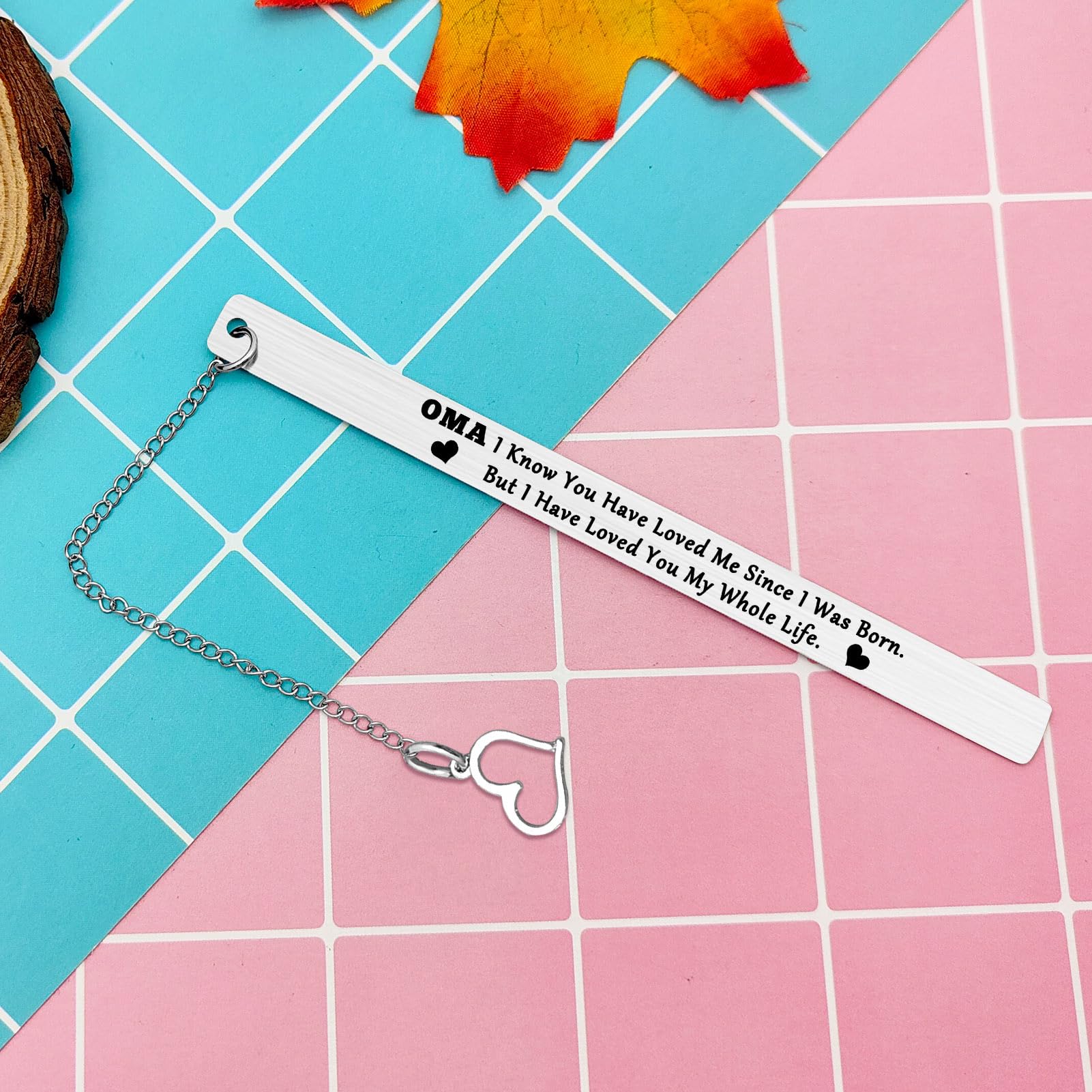 Oma Gifts for Grandma:Grandma Bookmarks Oma Gift This Bookmark hand stamped with the words "OMA i know you have loved me since i was born. But i have loved you my whole life. "A perfect gift to show your grand mom how much you love her.
