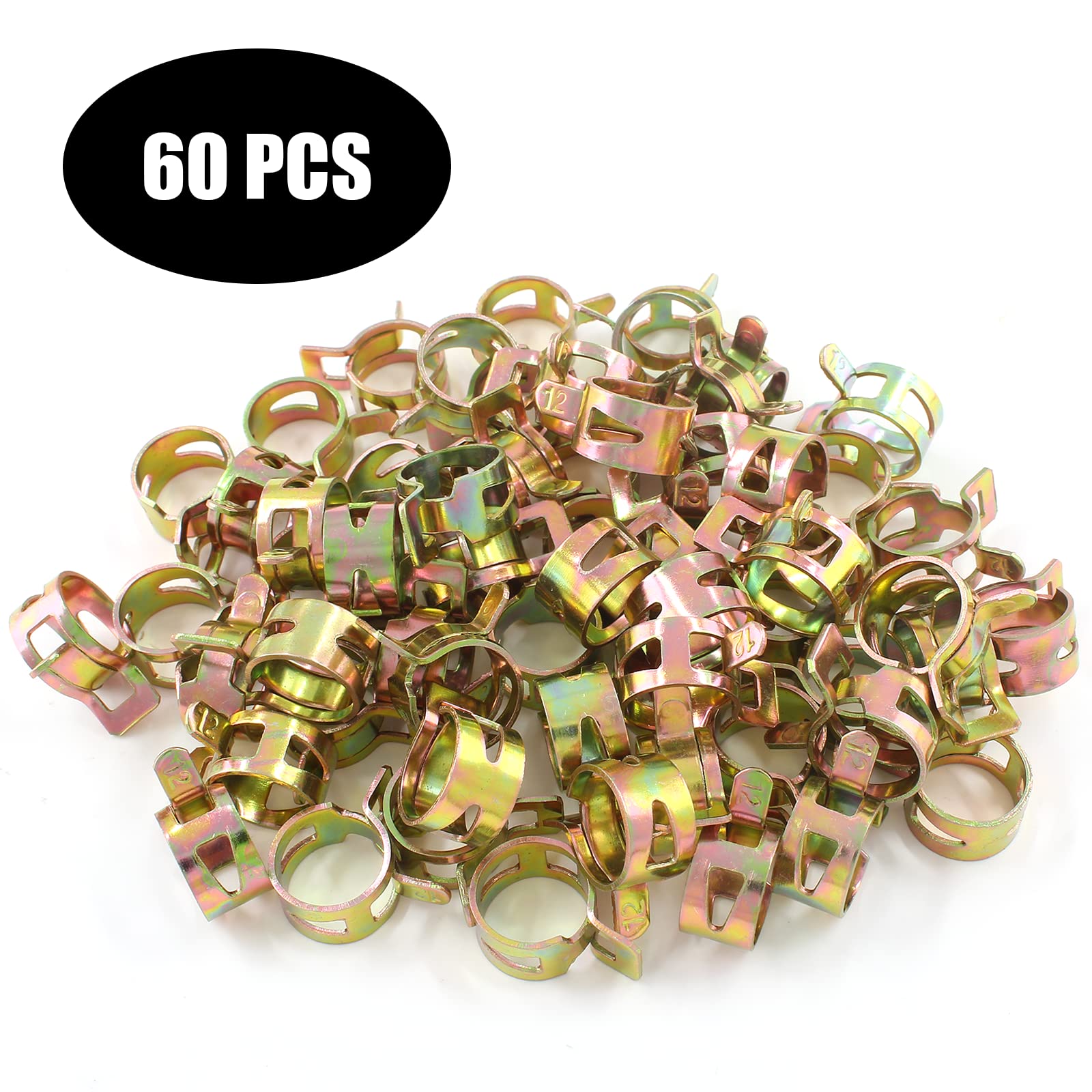 【Dimension】Inner diameter: 1/2 "(12mm), Packing: 60PCS. Small and precise design with high sealing. Note: Please make sure the inner diameter of the clamp you purchase is smaller than the outer diameter of the hose (approximately 1 mm).