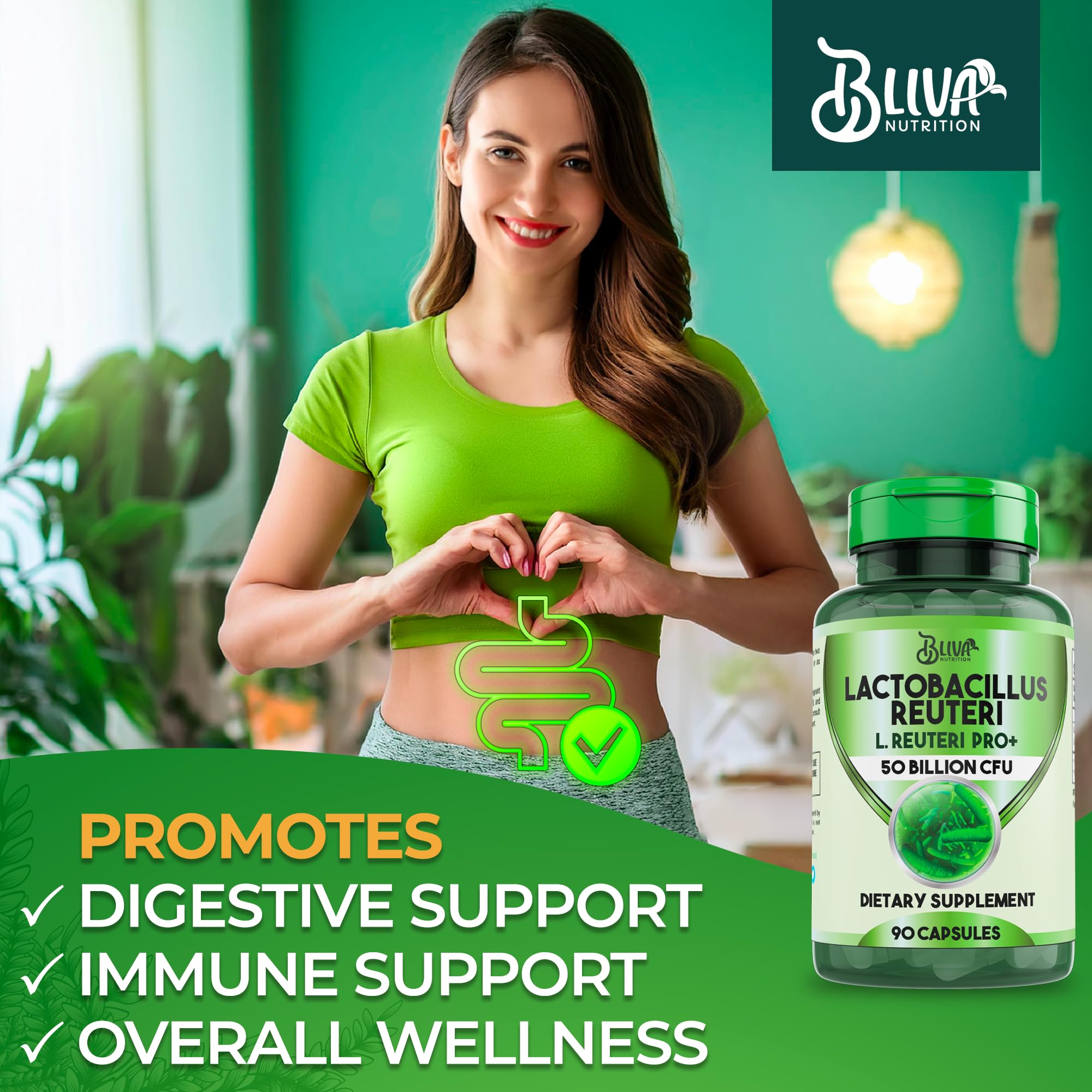 THE HIGHEST CFU COUNT: BLIVA Lactobacillus Reuteri Capsules delivers over 50 billion CFU per serving, one of the highest CFU counts available. Each bottle contains 90 capsules, providing a 45-day supply with the recommended 2 capsule per serving daily dose, Provides digestive support and promotes overall wellness.