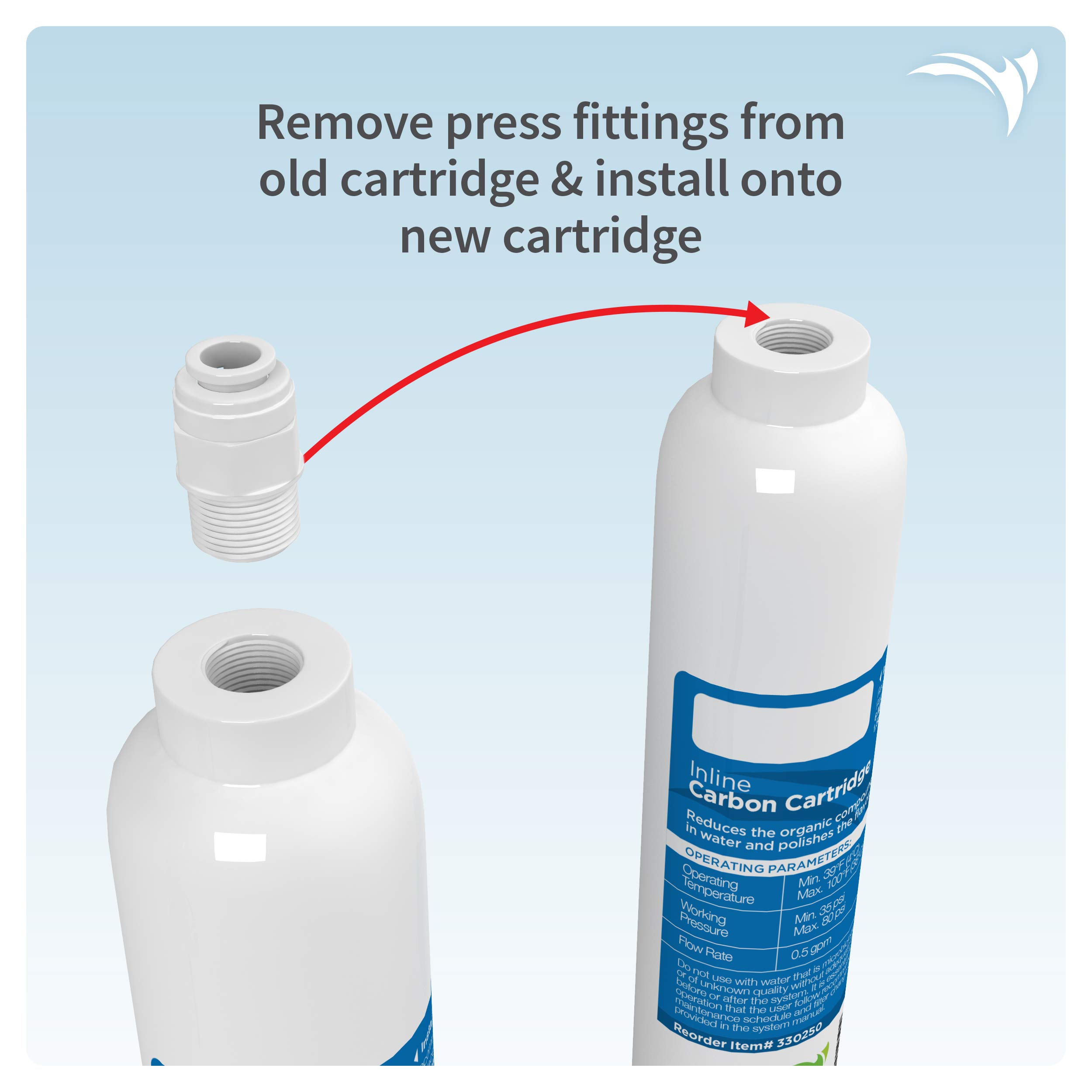 MOLDED ¼” CONNECTIONS - Each end of the cartridge has ¼” Female Pipe Threads (FPT) for easy connections to press fittings or standard plumbing components. Please note: this filter is designed for an aquarium filter system.