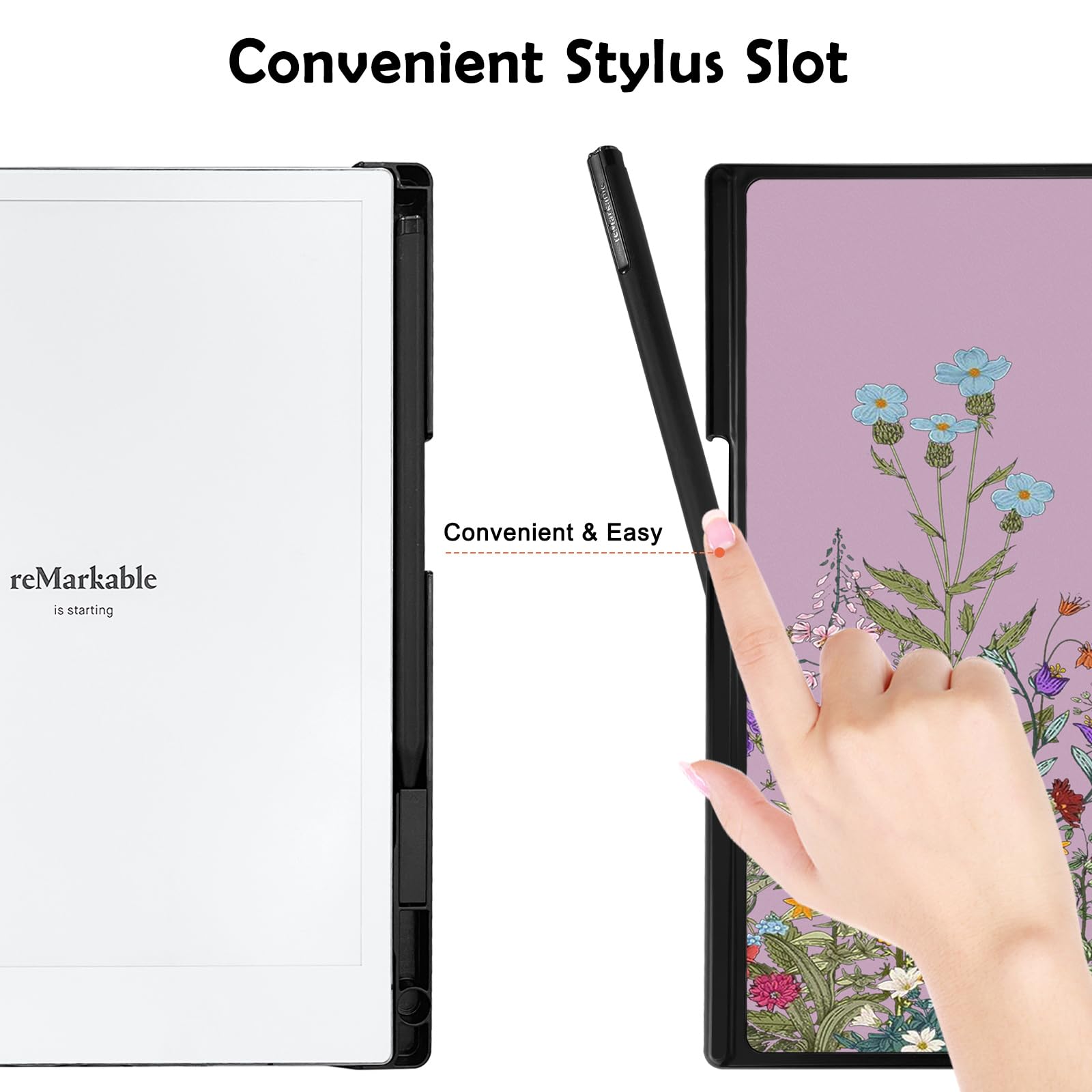 【new built-in pencil holder】-Our Tablet case Specifically designed with a pen holder to protect and store your reMarkable marker.In addition, designed with a small storage space, you will get 5 nibs that you can change at any time very conveniently!(Note: Non-original remarkable pens may fall out!)