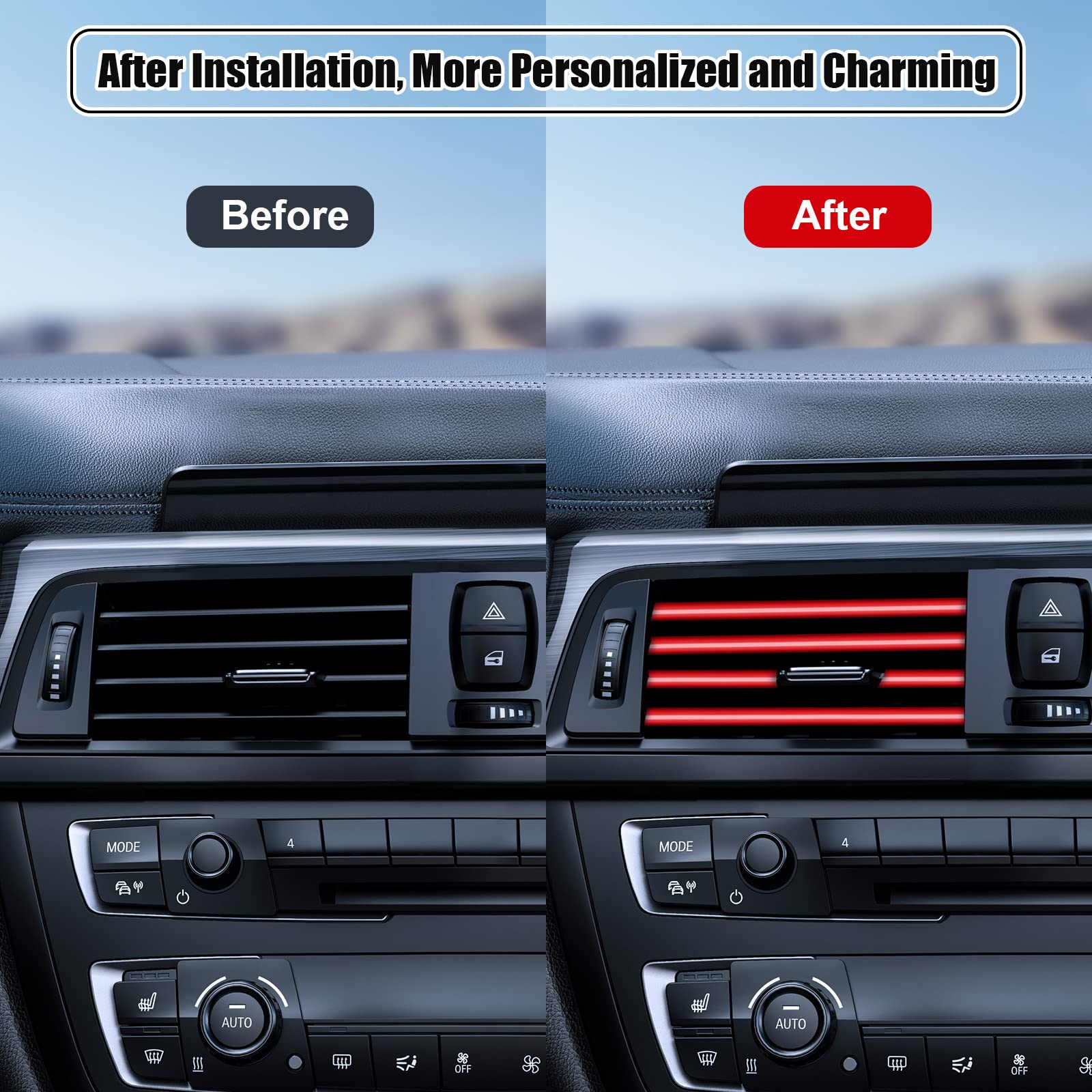 Personalized Decoration:The PYHLVCLF outlet trim decoration strip can be bent and cutting freely at your any demand. With the decoration and blessing of air vent outlet accessories for the car will turn into be more bright and beautiful, which create formation of a strong color impact, make your car interior atmosphere more refined stylish and colorful. And 20 pieces decorative strips can decorate your two cars, giving your enjoyable driving experience.