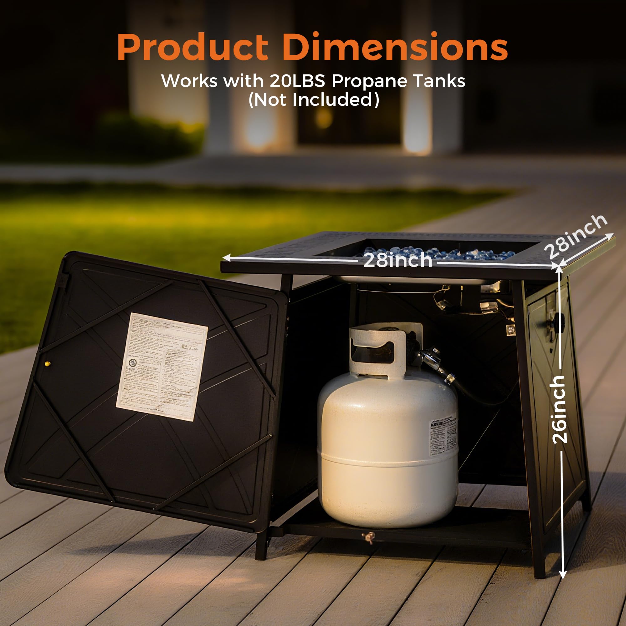 PERFECT SIZE: 28 L x 28 W inch square gas fire pit tabletop, 26 inch in height, net weight 50 lbs, it will not let you feel too bulky and large