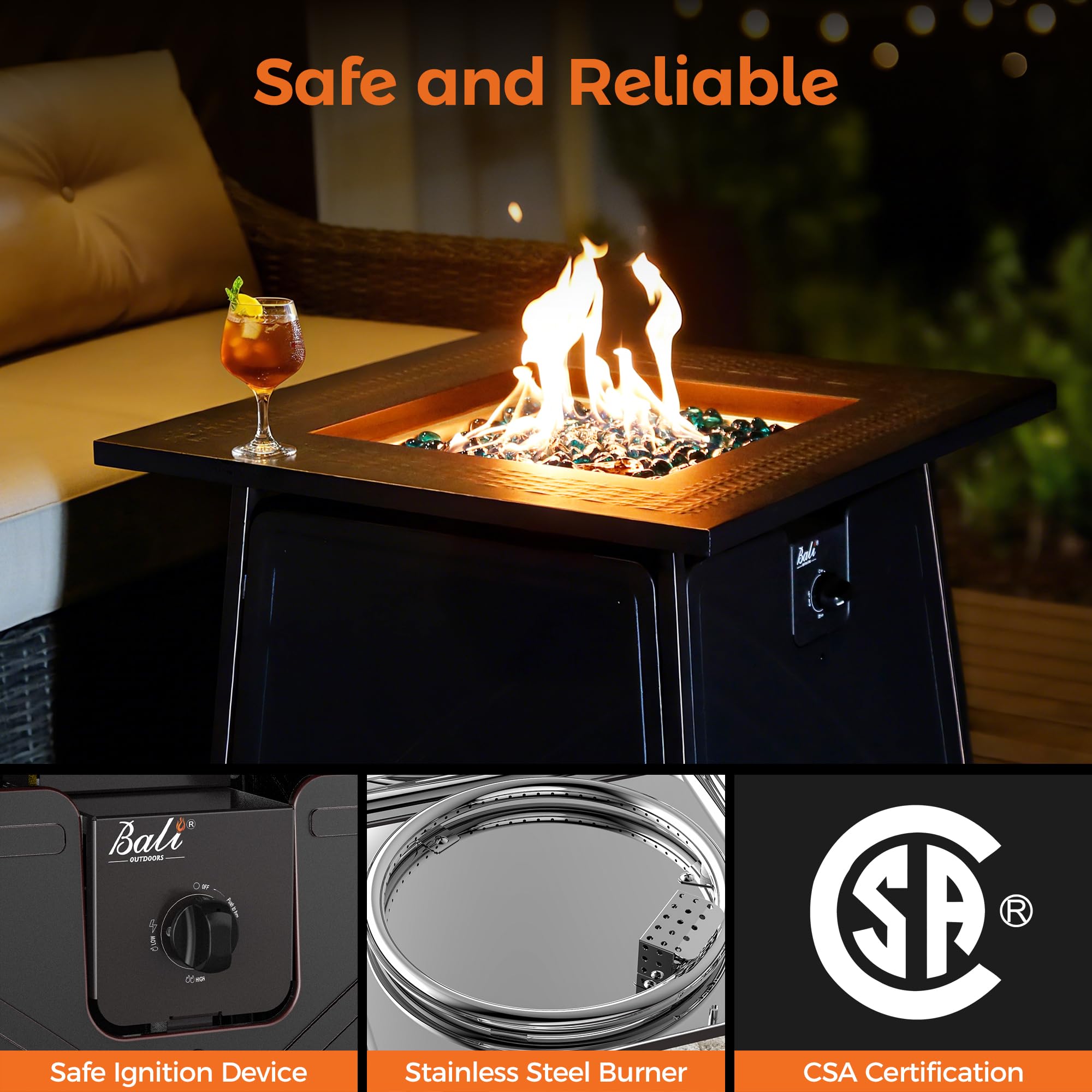 SAFTY AND GREAT HEAT OUTPUT: Our gas fire pit table is 50,000 BTU heat output gives you enough heat to warm you up on cool morning and nights
