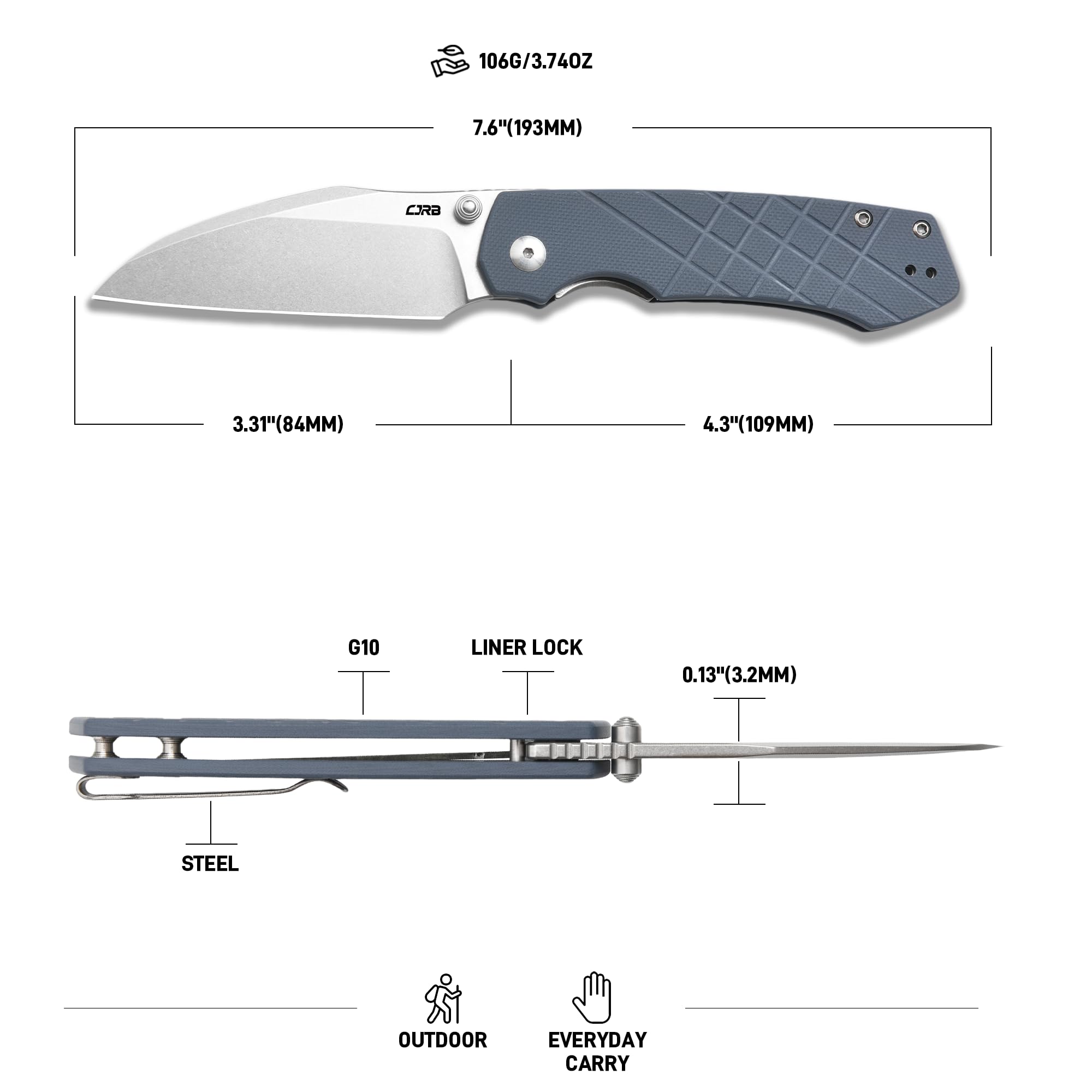 Sharp Blade: The CJRB Kestrel pocket knife is crafted from premium AR-RPM9 steel, offering outstanding edge retention and a super high hardness of HRC59-61. It ensures durability and sharpness. This folding knife is the ideal choice for various cutting tasks