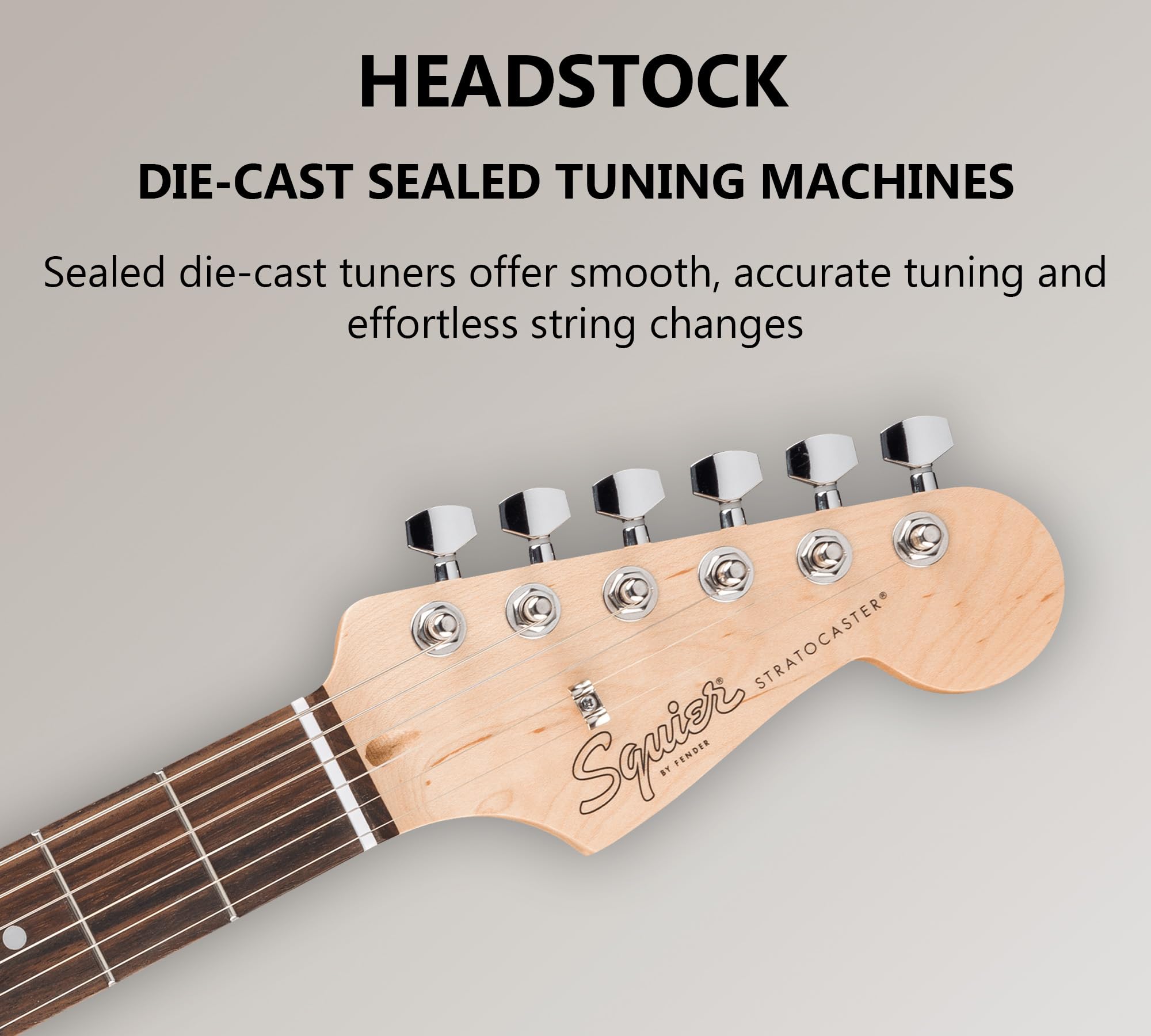 SQUIER SINGLE-COIL PICKUPS: Equipped with three Squier single-coil pickups, this guitar delivers the signature bright and articulate Stratocaster tone, perfect for a wide range of musical styles