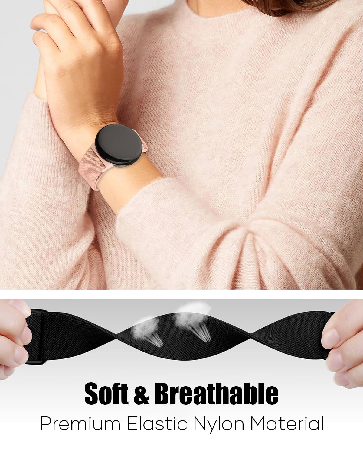 Compatible Models: BandRain nylon stretchy replacement bands specially designed for Google Pixel Watch 4 41mm (2025) & Google Pixel Watch 3 41mm (2024) & Google Pixel Watch 2 (2023) & Google Pixel Watch (2022). Please confirm your watch model before purchasing. (Note: Not fit for Pixel Watch 3 45mm/4 45mm)