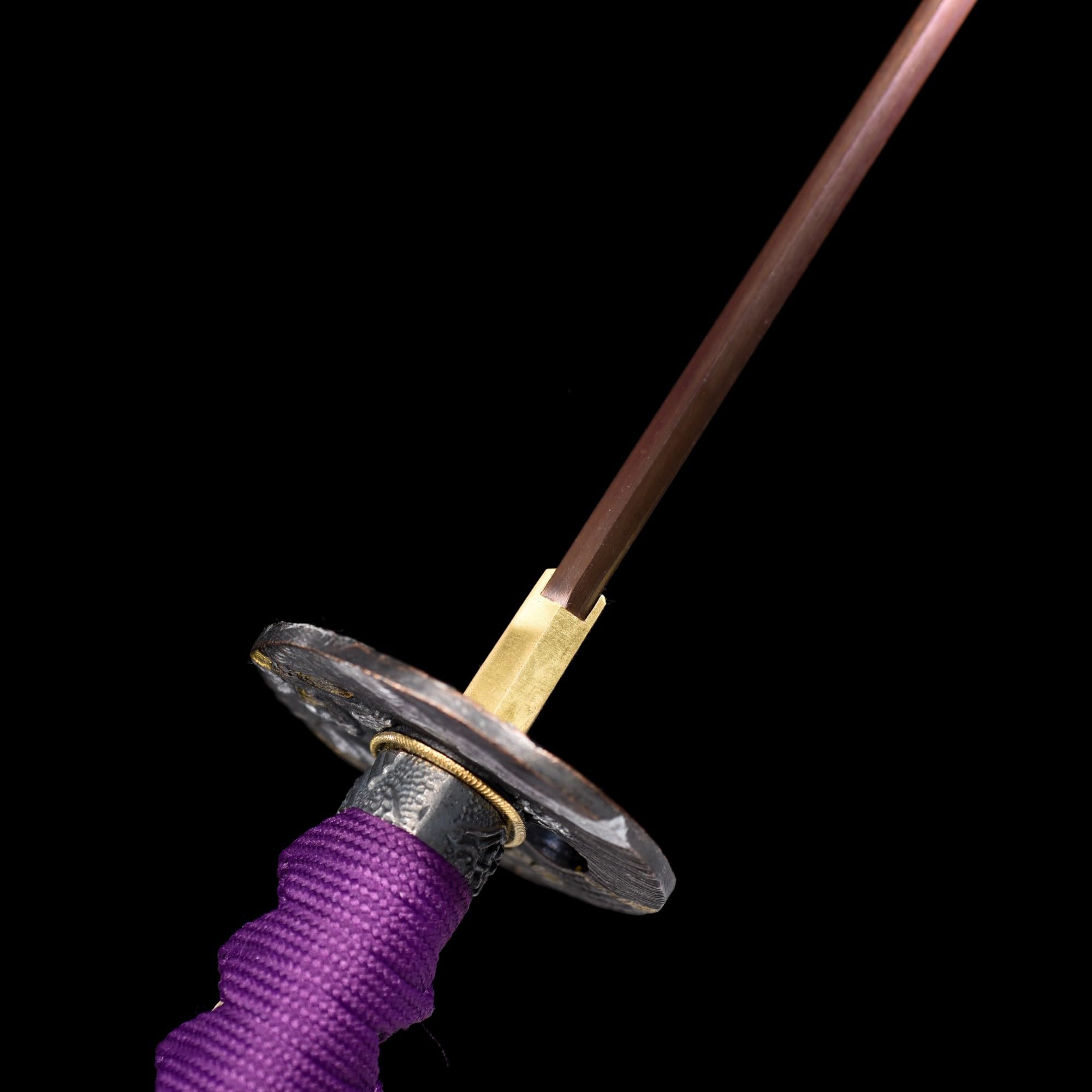 FITTINGS DETAILS: Dirt-Resistant Black Thin Ito absorbs sweat by wrapping up the handle and provides a comfortable grip to hold it firmly and avoid hand slip. The two nails support for this Clay Tempered Traditional Sword Provides a great support to the Sword Tsuka(Handle). With a well measured and Best Length Tang, it greatly enhances the Strength of the Sword.