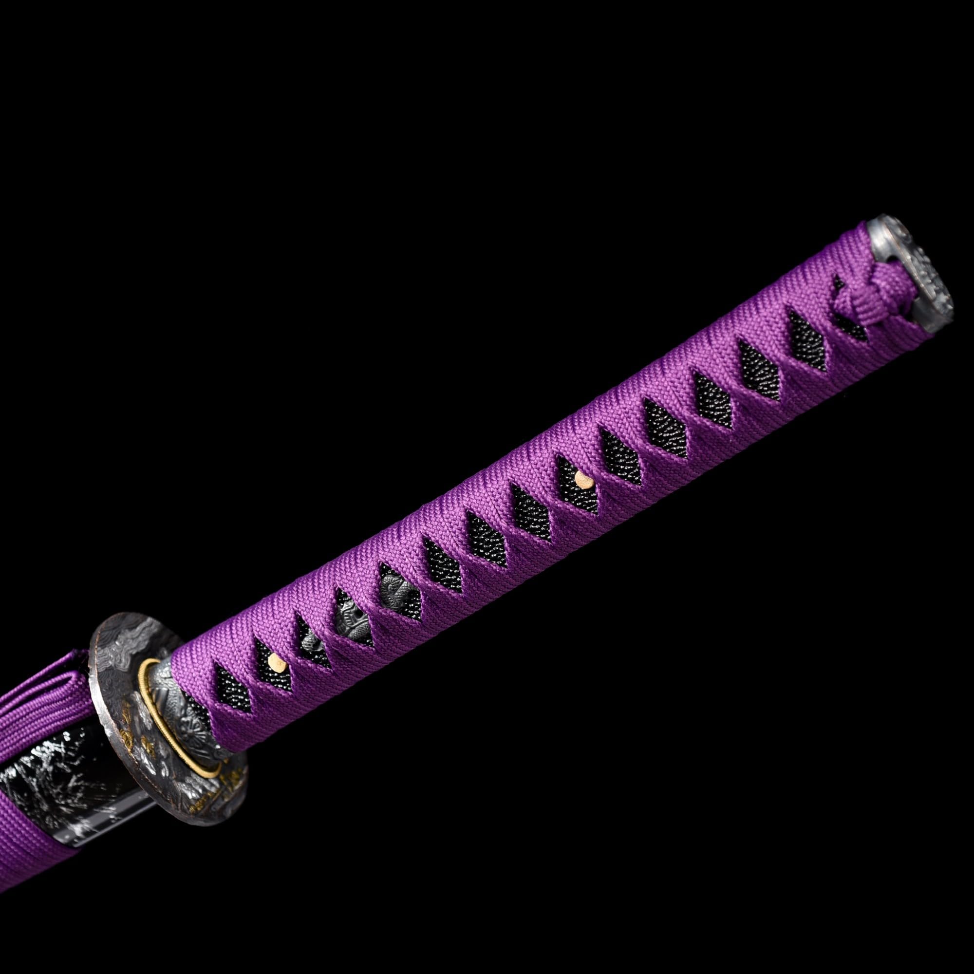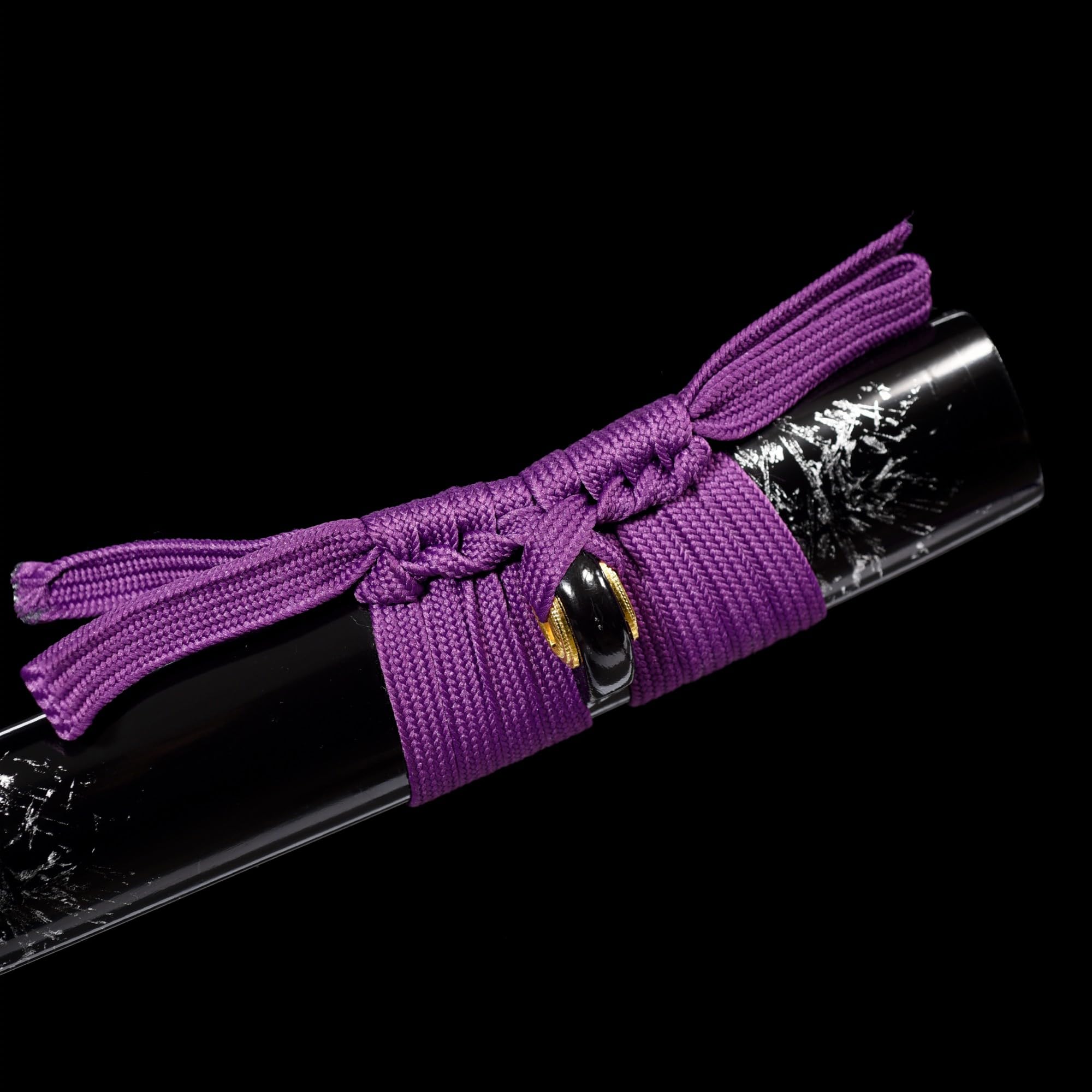 MATERIALS: To avoid fading and discolouration, Tsuba(Guard) is made of alloy material. The Handle(Tsuka) is made of Dirt-resistant black thin Ito that absorbs sweat. For refining, Clay Tempering Process is used for this Samurai Sword, with the Real Blade Grain(Hamon). Other materials include black imitated rayskin, High Quality Wooden Sheath and gray-painted Saya(Scabbard).