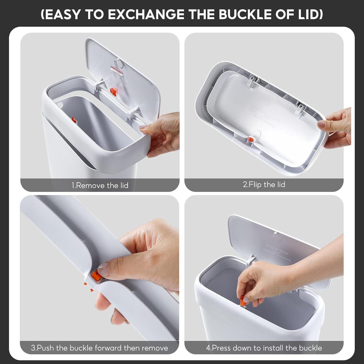 EASY TO USE: Made of high-quality plastic, this white mini kitchen trash bin have a smooth surface that is easy to clean, lightweight while durable. The lid is easily removable for cleaning or trash disposal. Comes with trash bag holder holes to neatly hide extra trash bags and enhance its aesthetic appeal to your home and office