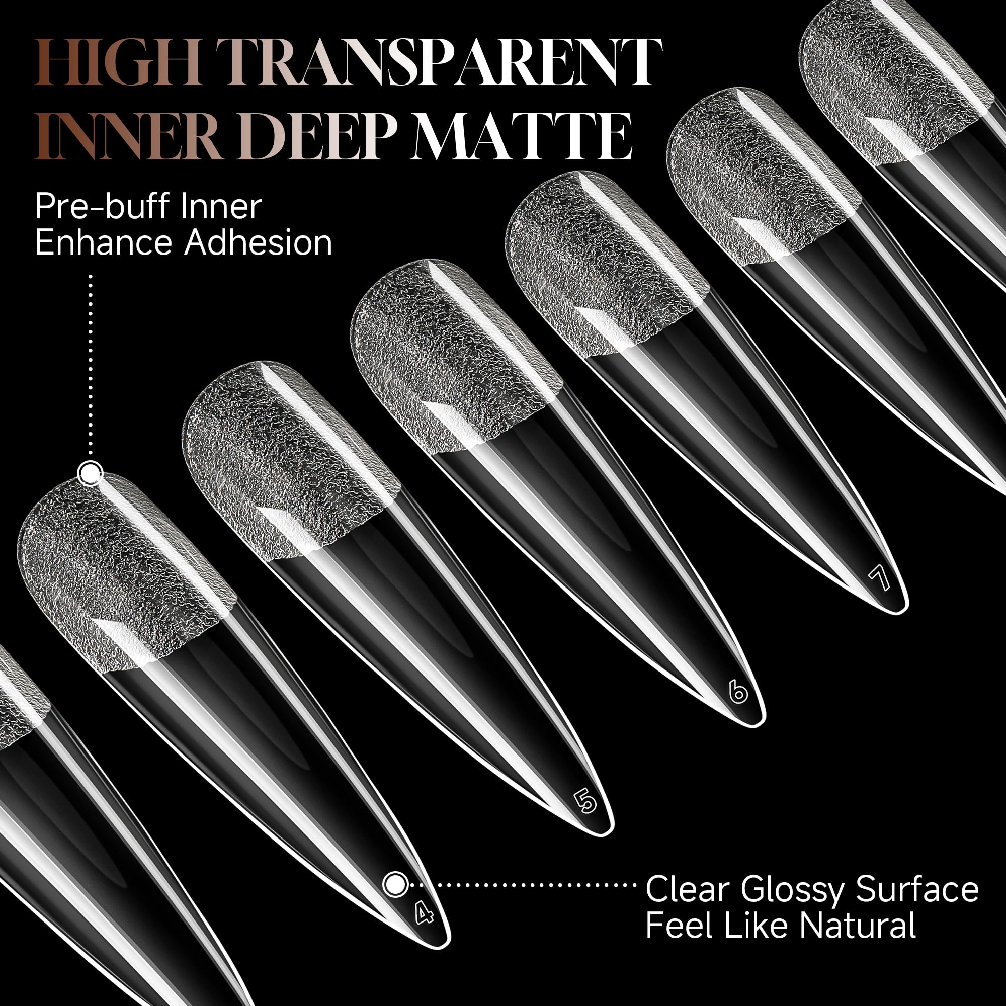 【Inner Deep Matte Texture】- Our Stiletto press on nails choose an inner frosted texture, better fitting your nails. The nail tip is pre-shaped, saving you time and effort. No worry that your nail will become thinner and uglier due to polishing, providing better care for your nails.
