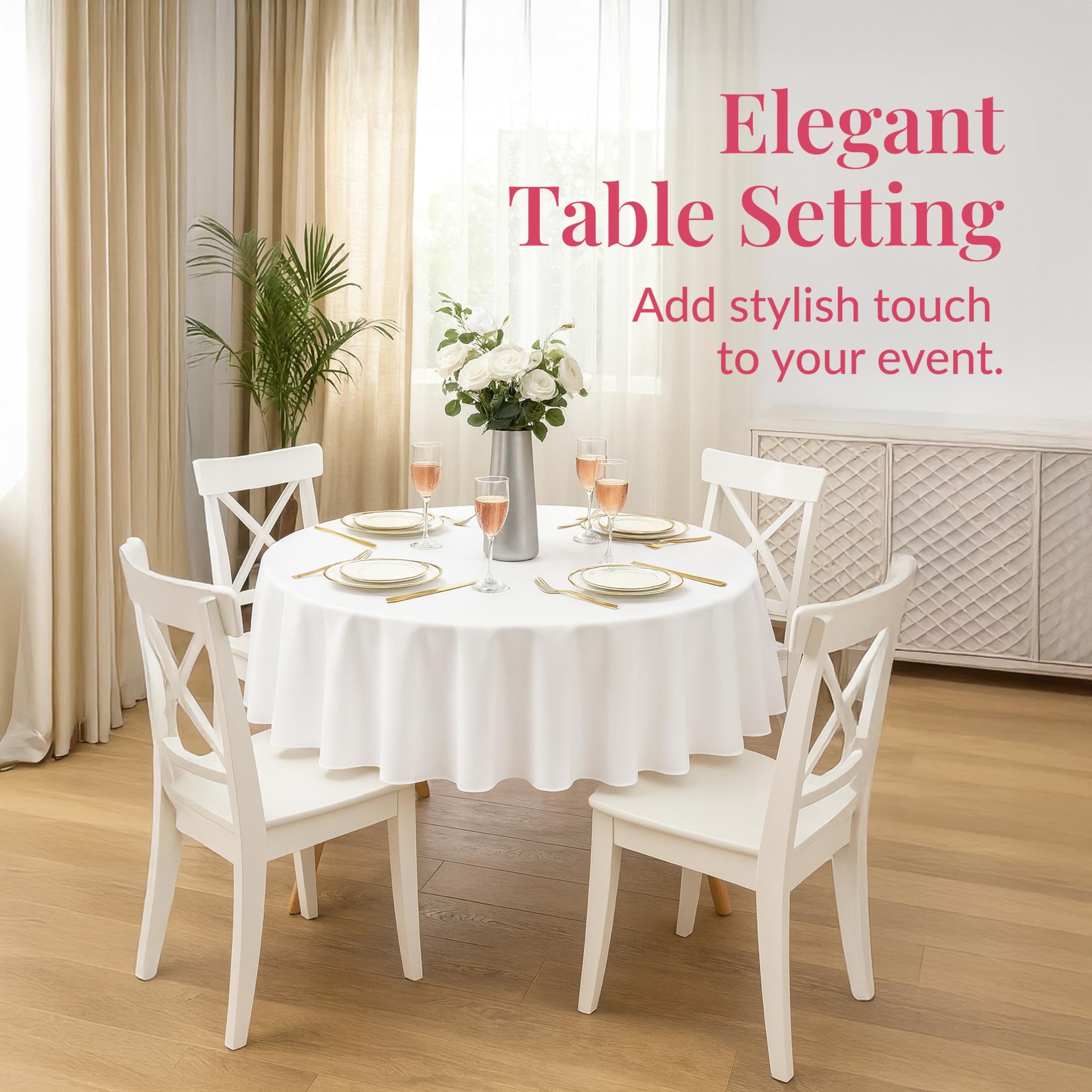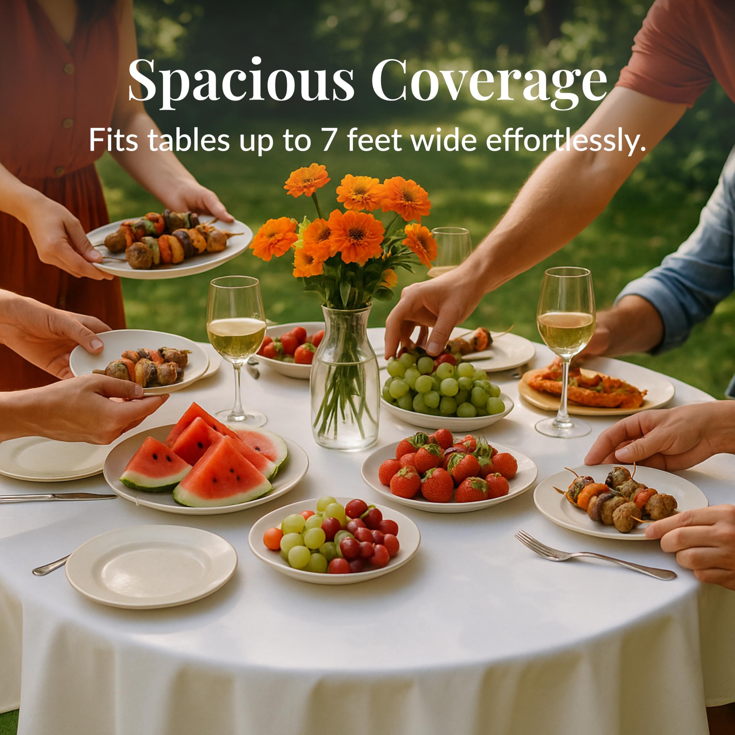 Sized for Large Round Tables: This circle tablecloth measures 84 inches to cover tables up to 7 feet wide; great for formal dinners, family events, or professional gatherings needing full coverage