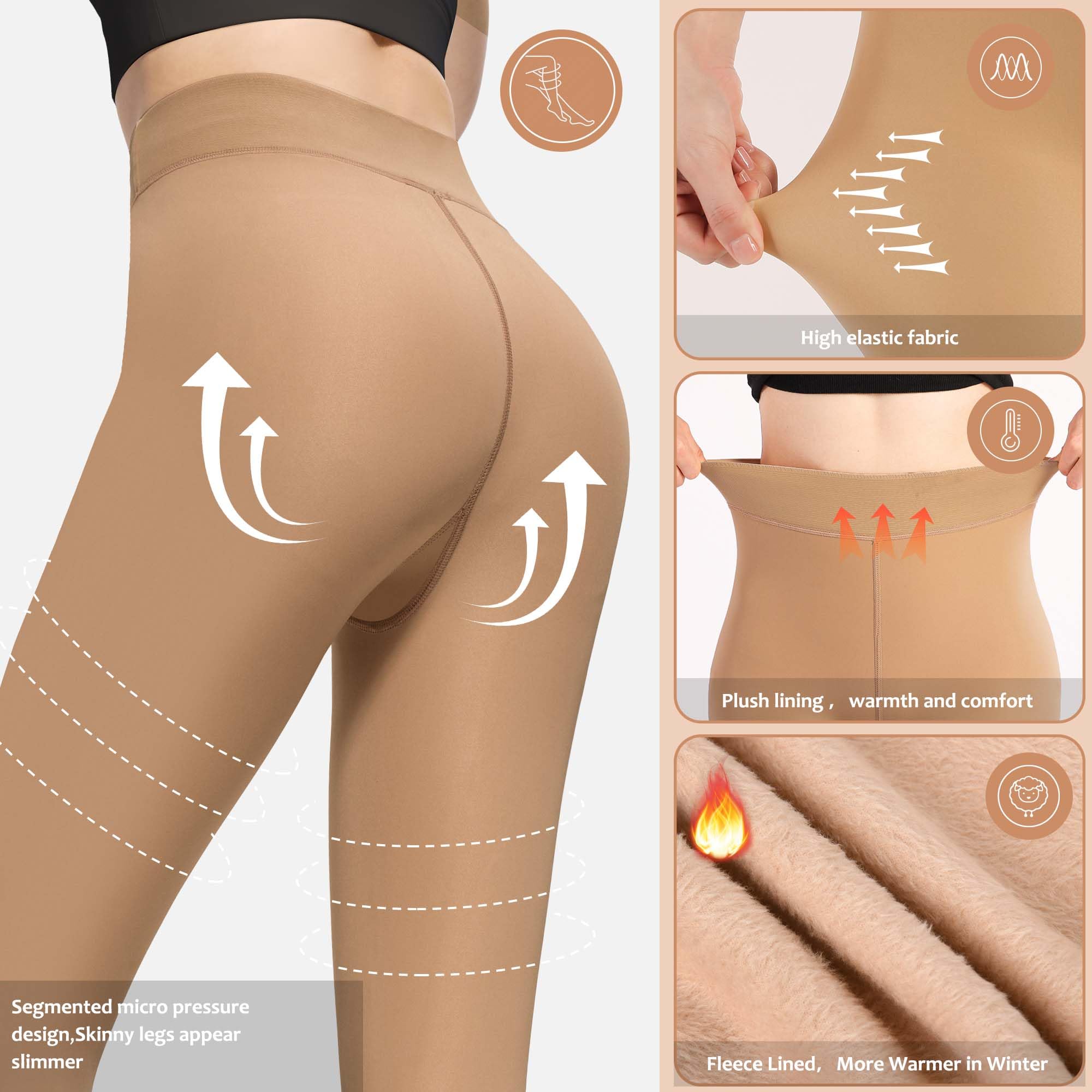 Fake Translucent Thermal Skin Colored, Fashionable Life: These Fake translucent fleece leggings are perfect for winter. They have the appearance of stockings from the outside but are lined with warm fleece on the inside, providing both style and cozy, Not only show your figure but also keep you warm throughout the colder seasons. These fleece tights have pantyhose and Stirrup style comes in classic, versatile colors like black, grey, and brown, making them easy to match with any outfit.
