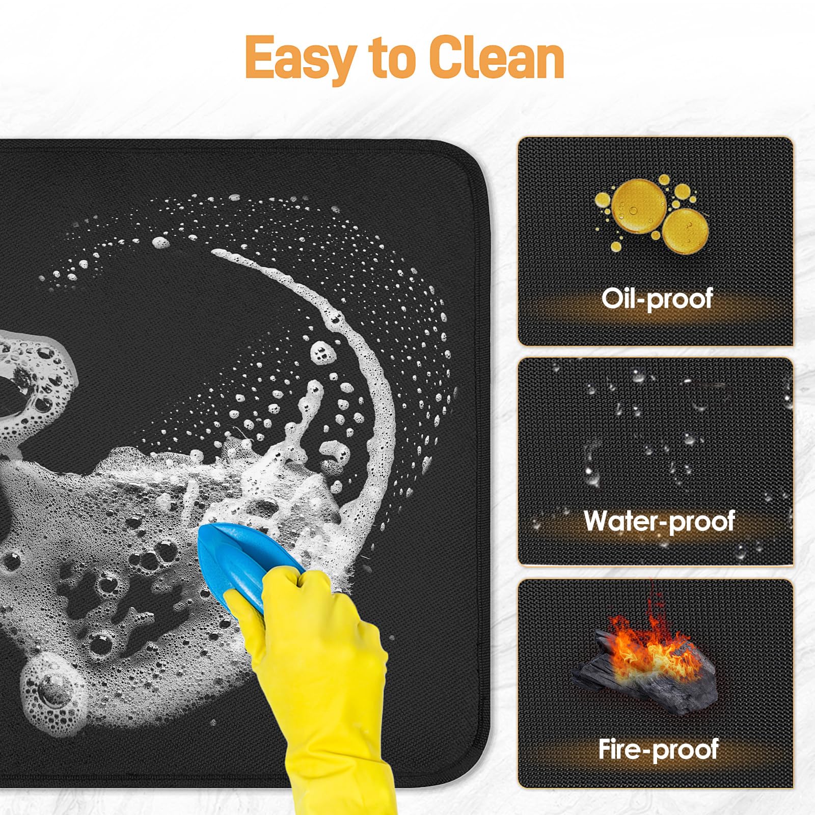 【Oilproof & Hassle-Free Cleaning】Our heat resistant mat features a smooth, waterproof surface that repels oil and stains. Just wipe with a damp cloth or rinse with water, then fold for compact storage.