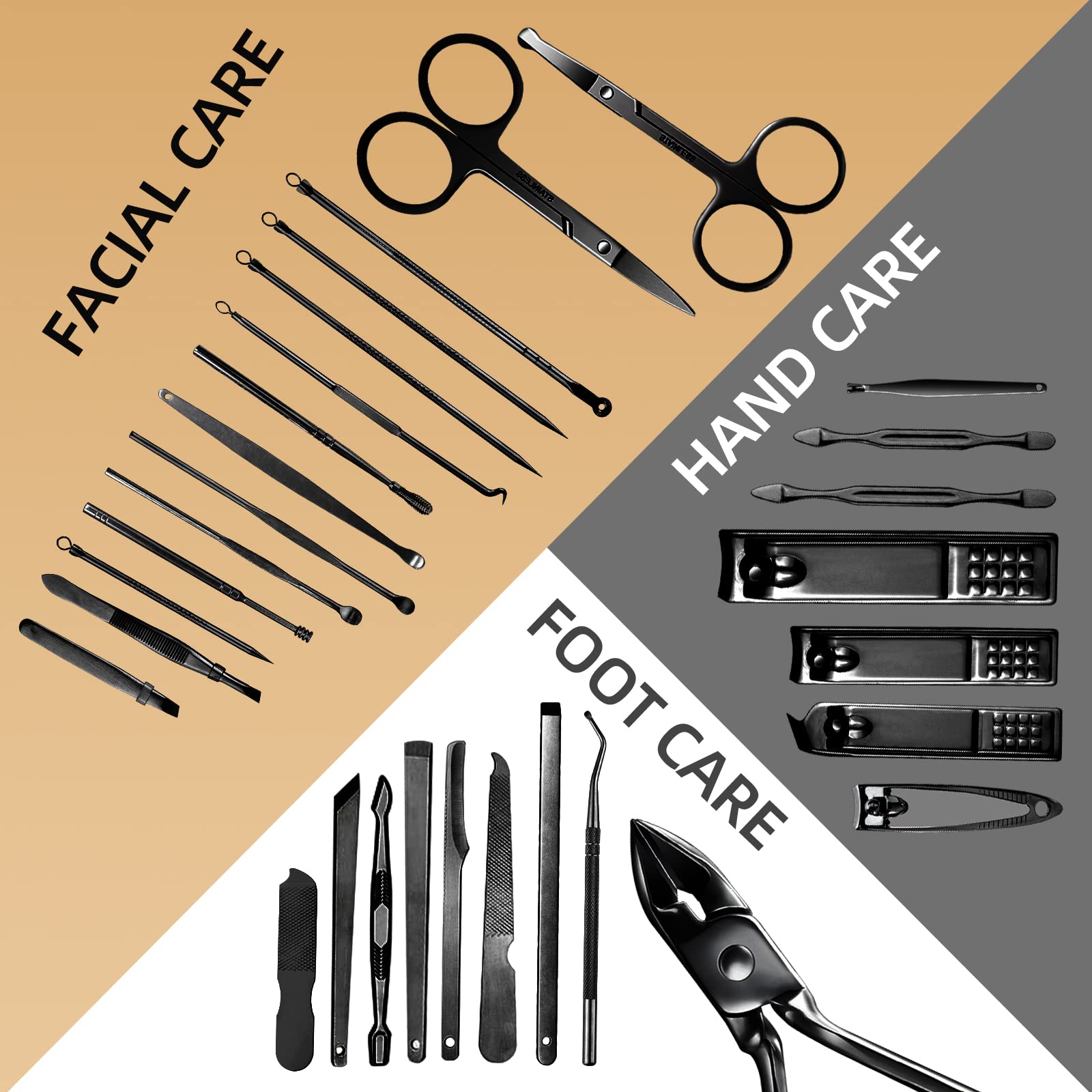 😍【Light Weight and Nail Clippers】: 30 nail care kit all in a portable case, convenient to carry out or just home use. 6.2 inches long and 4.7 inches wide.grooming Nail kit, lightweight in design making it your perfect travel partner, offering exceptional foot, hand and facial grooming tools.you will not want to separate in your travels and also everyday life.