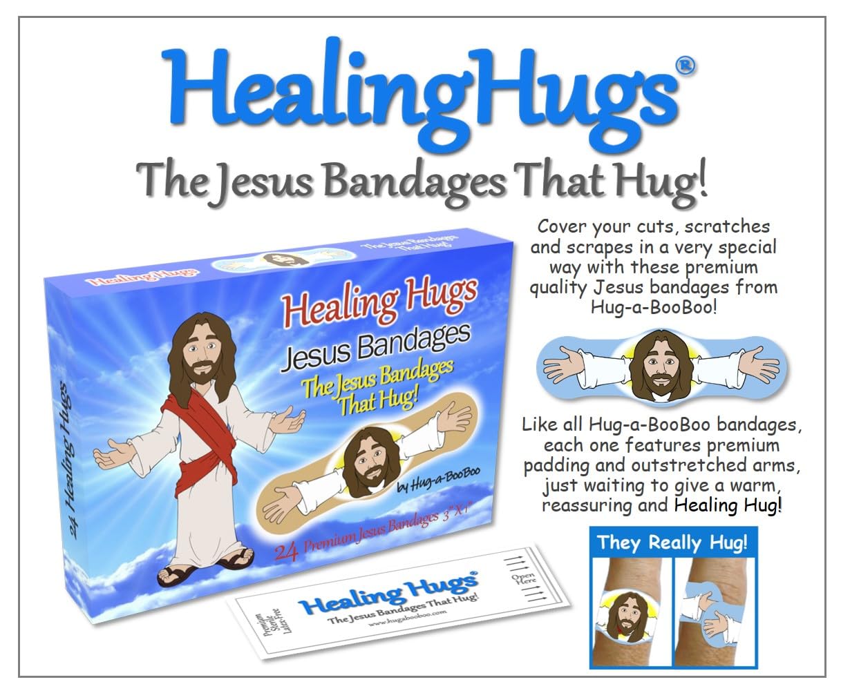 Healing Hugs Jesus Bandages - Premium Adhesive Hugging Jesus Bandages from Hug-a-BooBoo, The Jesus Bandages That Hug! 24 Count Box