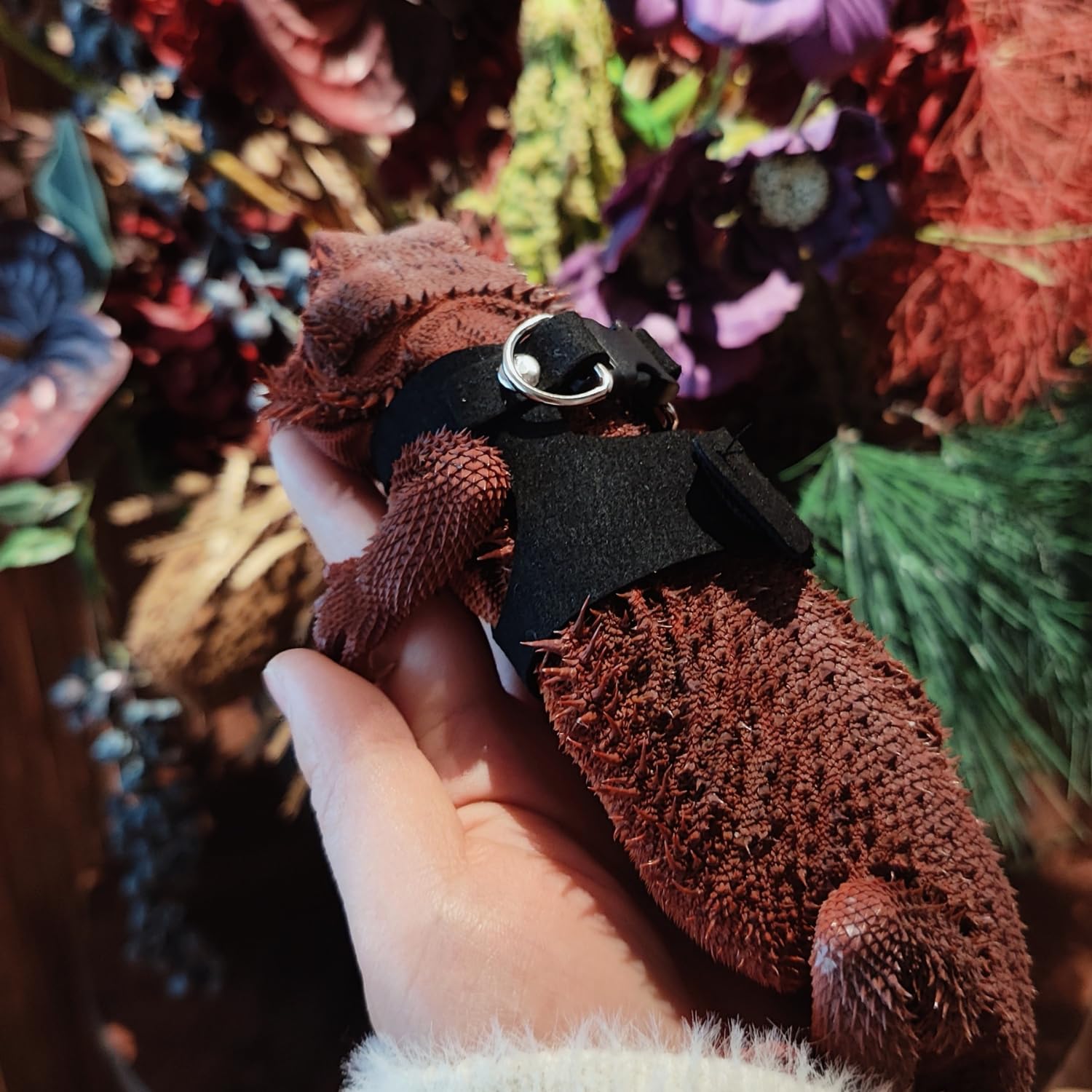 Lizard Walking Leash: Comes with a 6.5 ft nylon leash with 360° rust-proof swivel hook.The long leash offers ample length and freedom for your bearded dragon to explore their surroundings. You can bring your lizard outside with no concerns. The metal Clasp at the front can be easily attached and detached as well