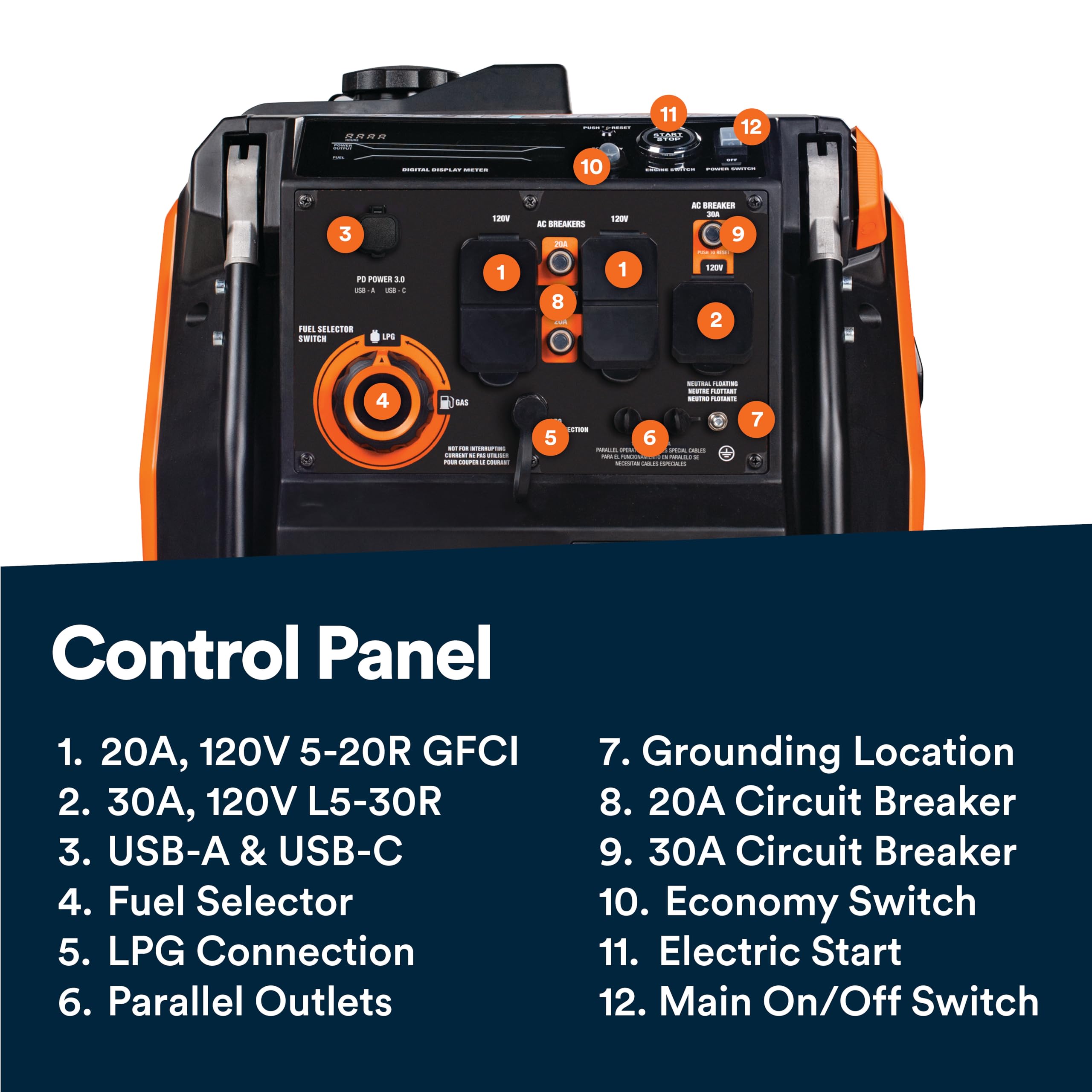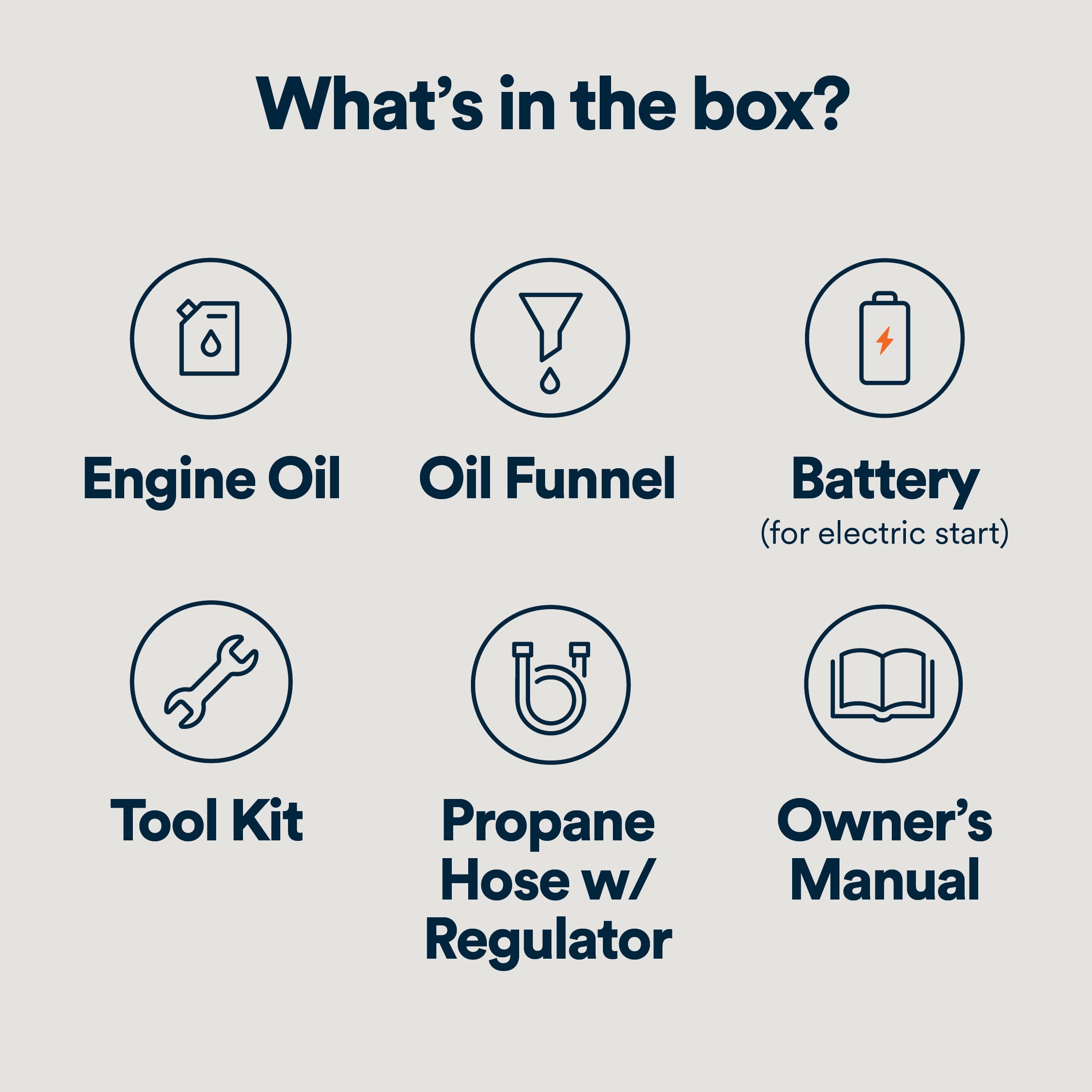 Convenient Electric Start: Say goodbye to manual cranking. The electric start feature, with the included battery, ensures easy and hassle-free operation, so you're always prepared for unexpected outages
