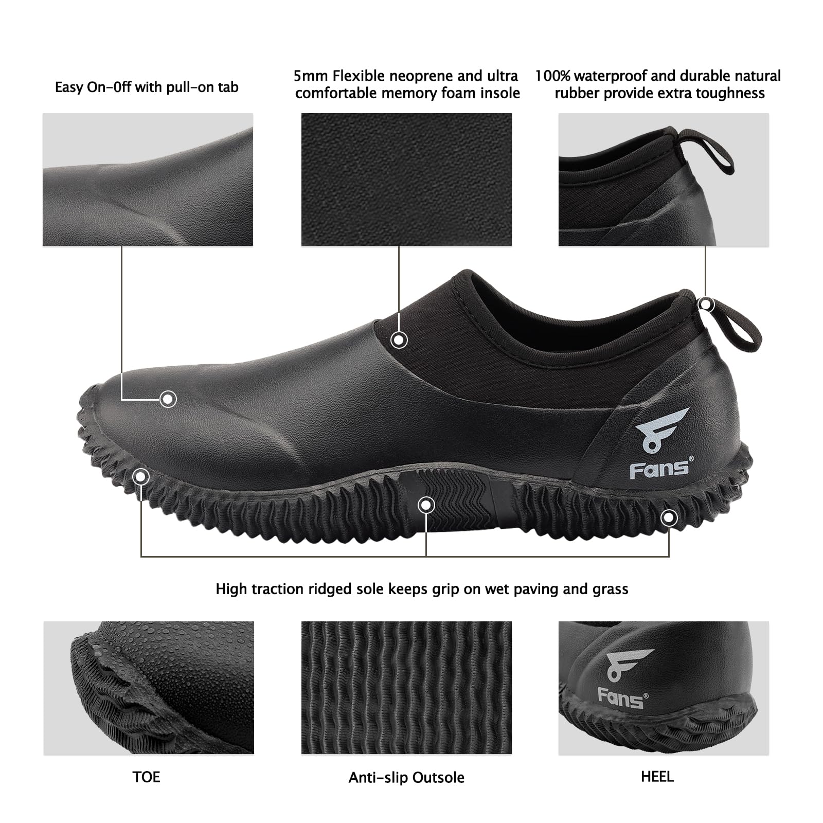 Superior Waterproof Design: 8 Fans garden shoes Made from 100% natural rubber and insulating neoprene, these shoes ensure your feet stay dry and warm in any weather condition. The integrated design provides all-around waterproof protection, shock absorption, and heat retention.
