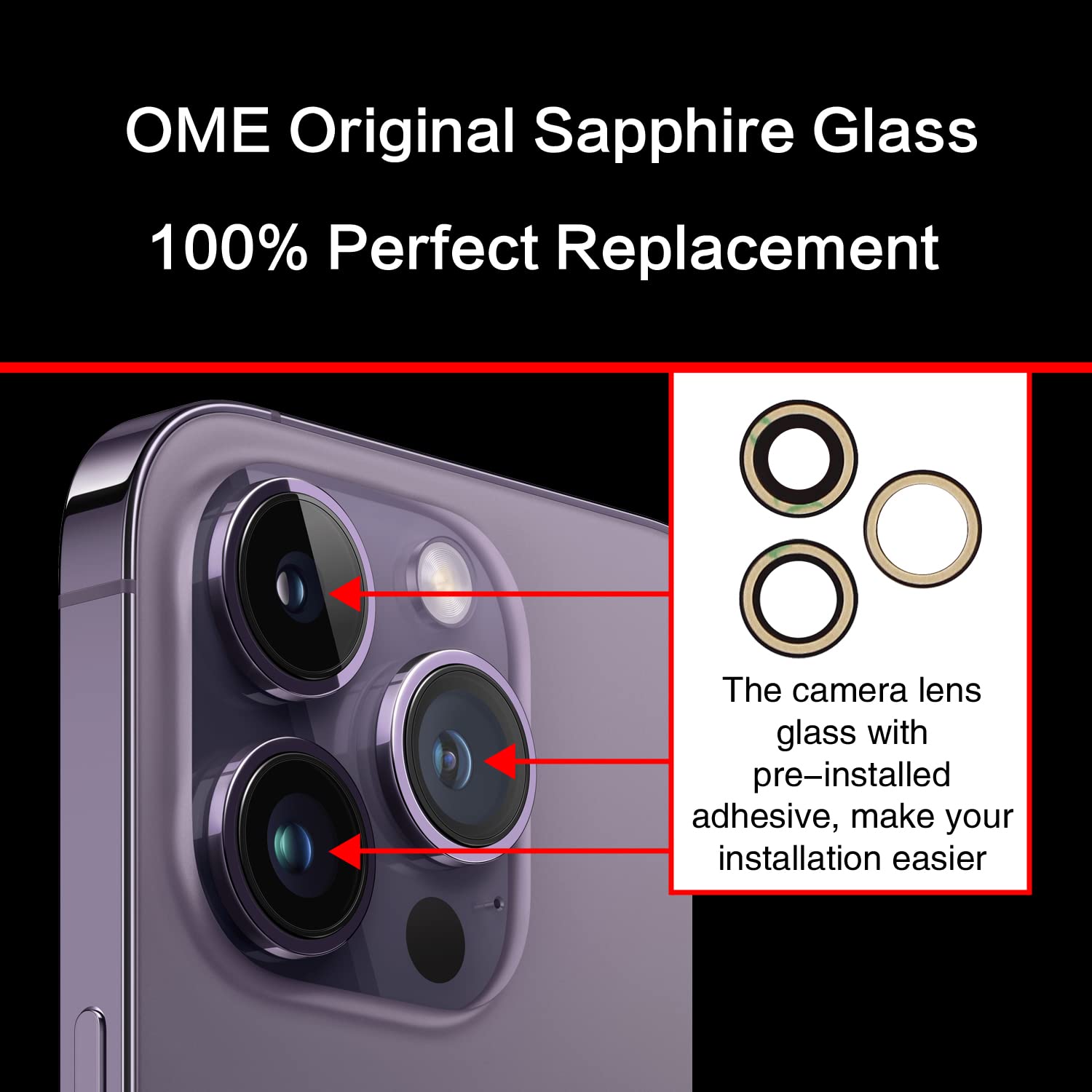 【OEM Camera Lens Glass 100% Fit】100% perfect fit original back rear camera glass replacement for iPhone 14 Pro 6.1 Inches All Carriers . Not for iphone 14 and iphone 14 Plus. Precisely the same as your iphone 14 Pro OEM camera glass. Comes with original double-sided adhesive insure that the new lens glass will not fall off. Don't worry about glue overflow and affect the appearance!