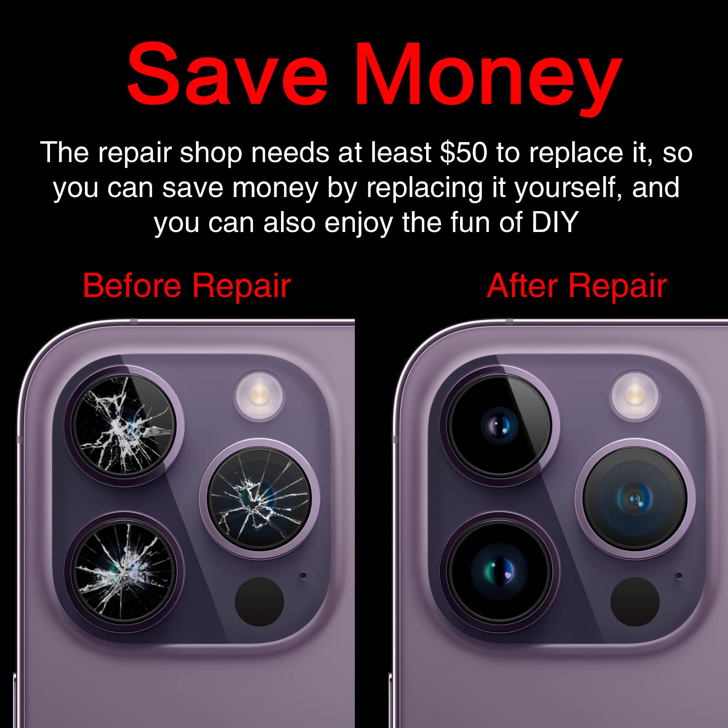 【Your Patience Has Saved You 50+ Dollars】Included a professional repair toolkit which make your repair much more easier, no need to open your phone. If it is replaced at a local mobile phone repair shop, it will cost at least $50+. But if you buy the 14 pro rear camera replacement kit and repair it yourself, your patience has saved you 50 dollars, it is really cost-effective!!! And you can also experience the fun of DIY. After calculating this account, why not replace it yourself?