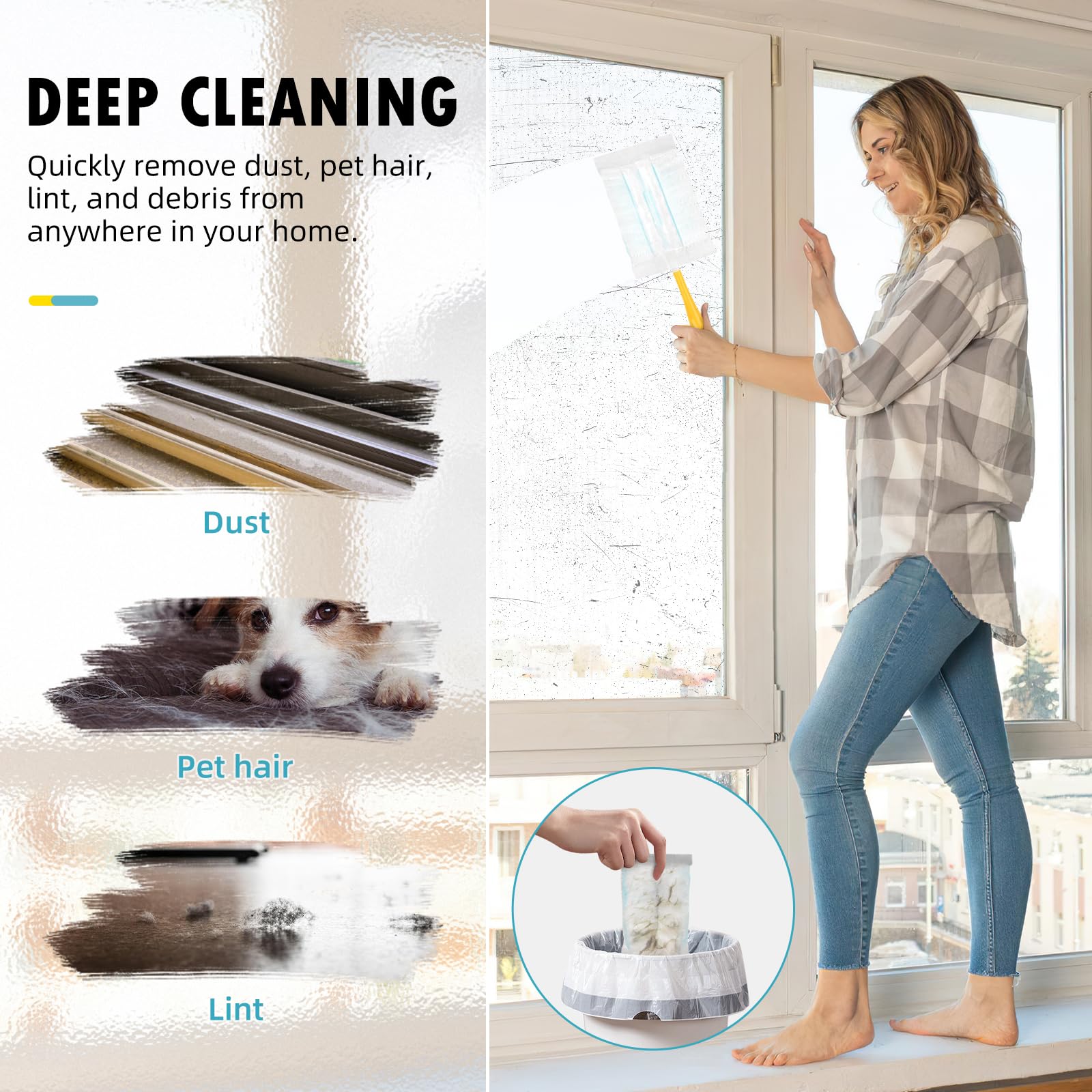 [Deep Cleaning] --- Ultra strong electrostatic interaction can easily remove dust and hair from various dry surfaces such as monitors, shelves, blinds, ceiling fans, ceilings, and glass.