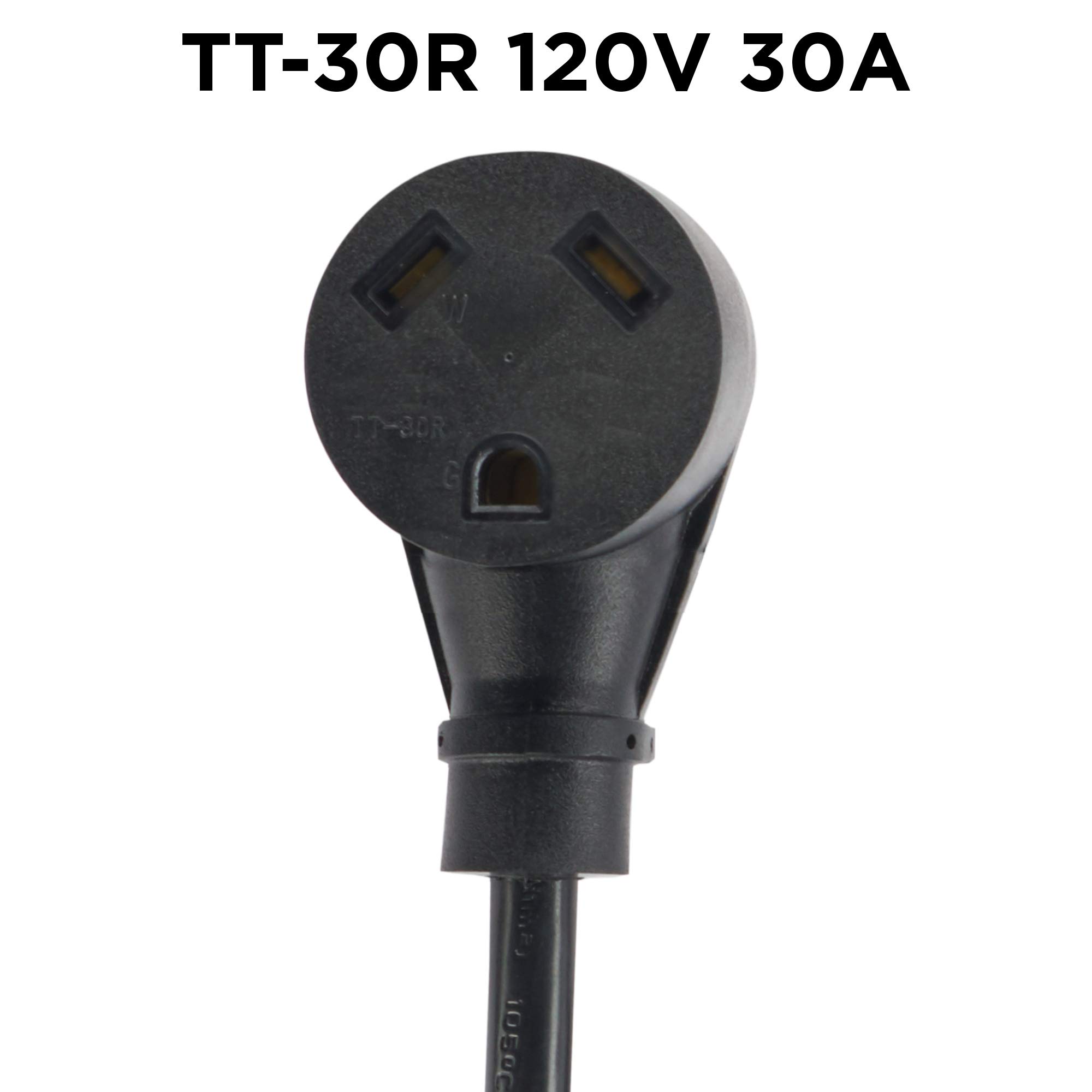 Durable, rubber-molded Receptacles featuring two parallel input ends and one NEMA 120V TT-30R RV ready power outlet