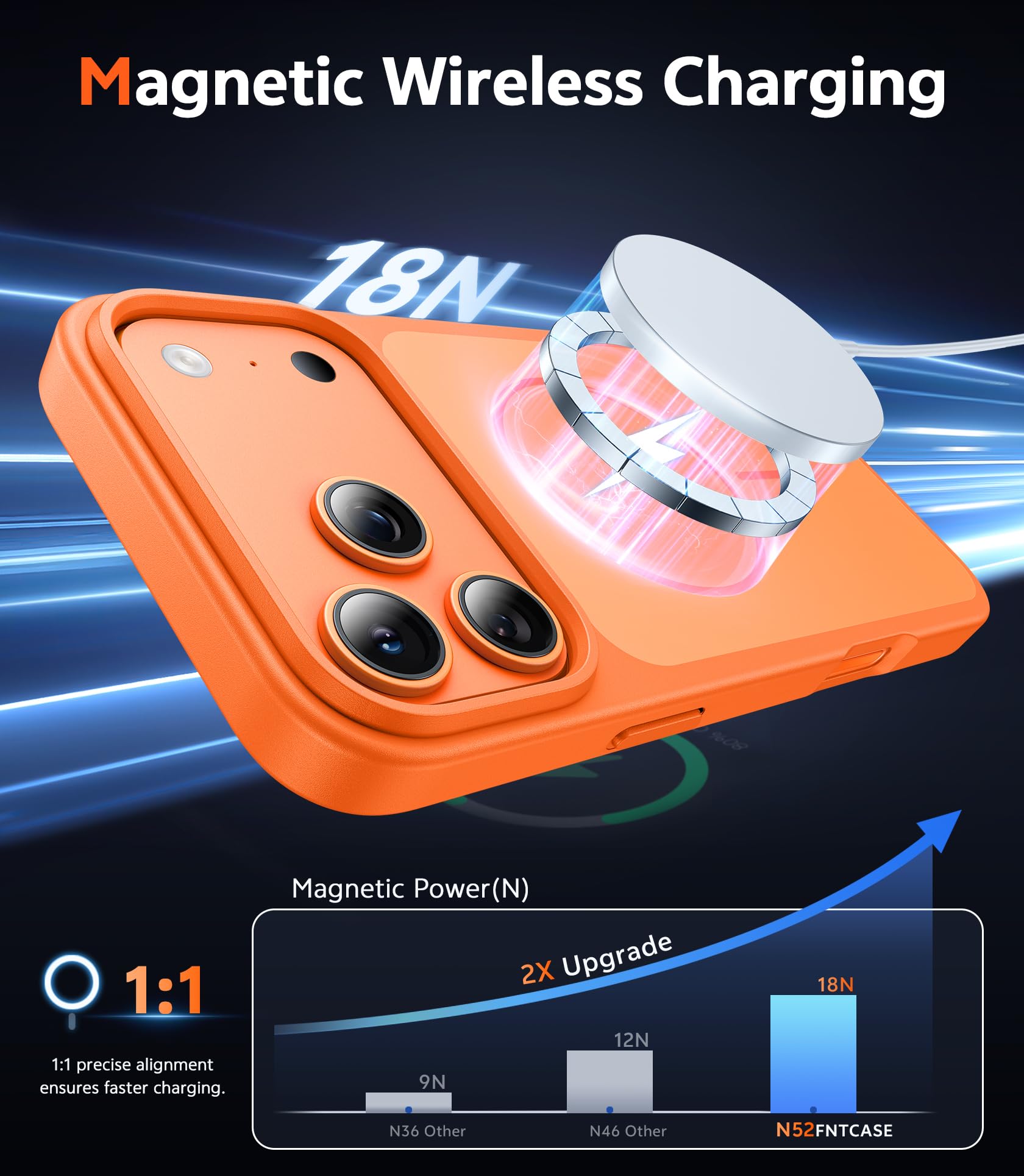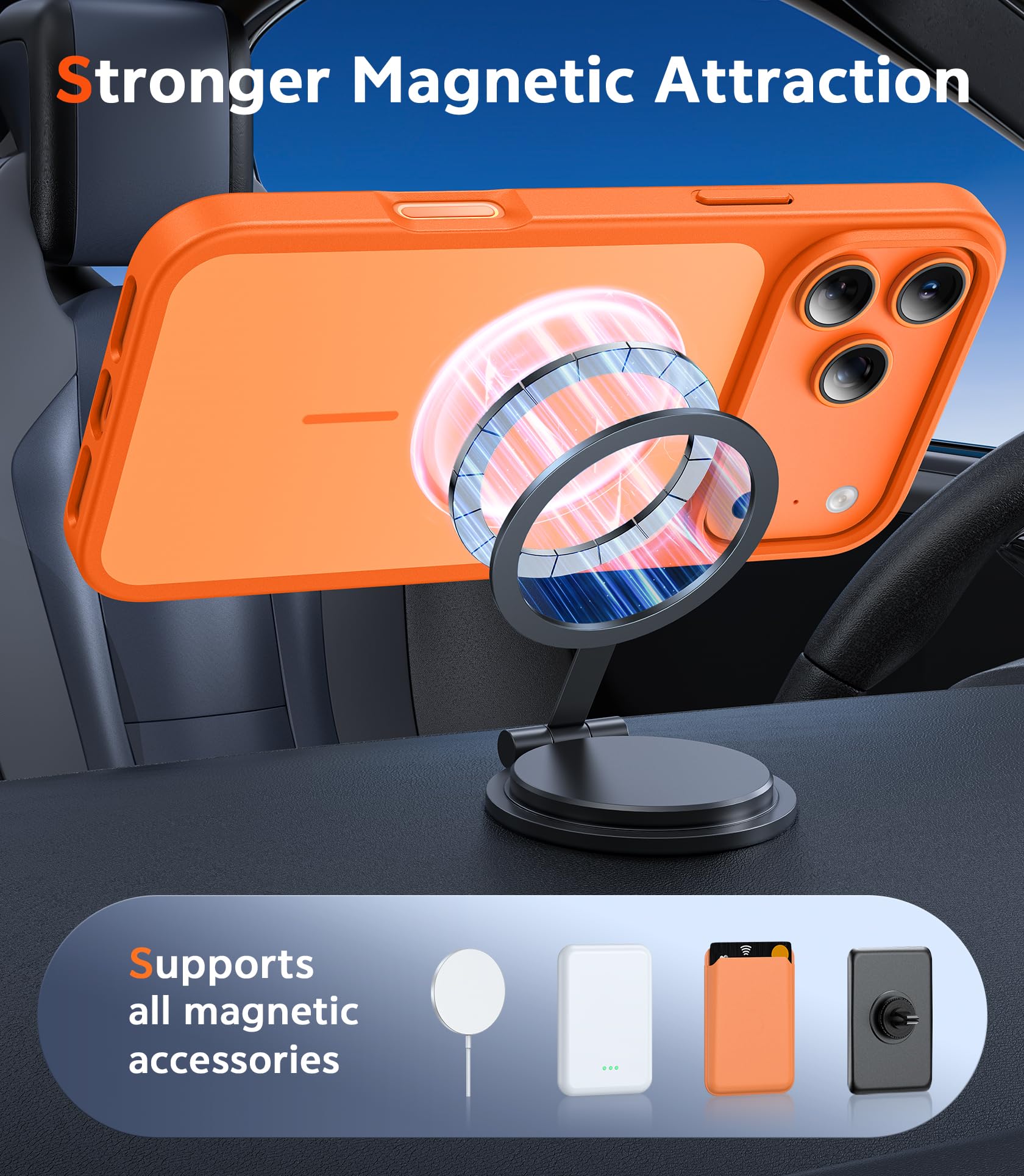 Strong Magnetic Attraction: For Magnetic chargers and other Qi Wireless chargers without signal influence. The iphone 17 pro max magnetic case has built-in 38 super N52 magnets. Its magnetic attraction reaches 2400 gf, which is almost 7X stronger than ordinary, therefore it won't fall off no matter how it shakes when you are charging