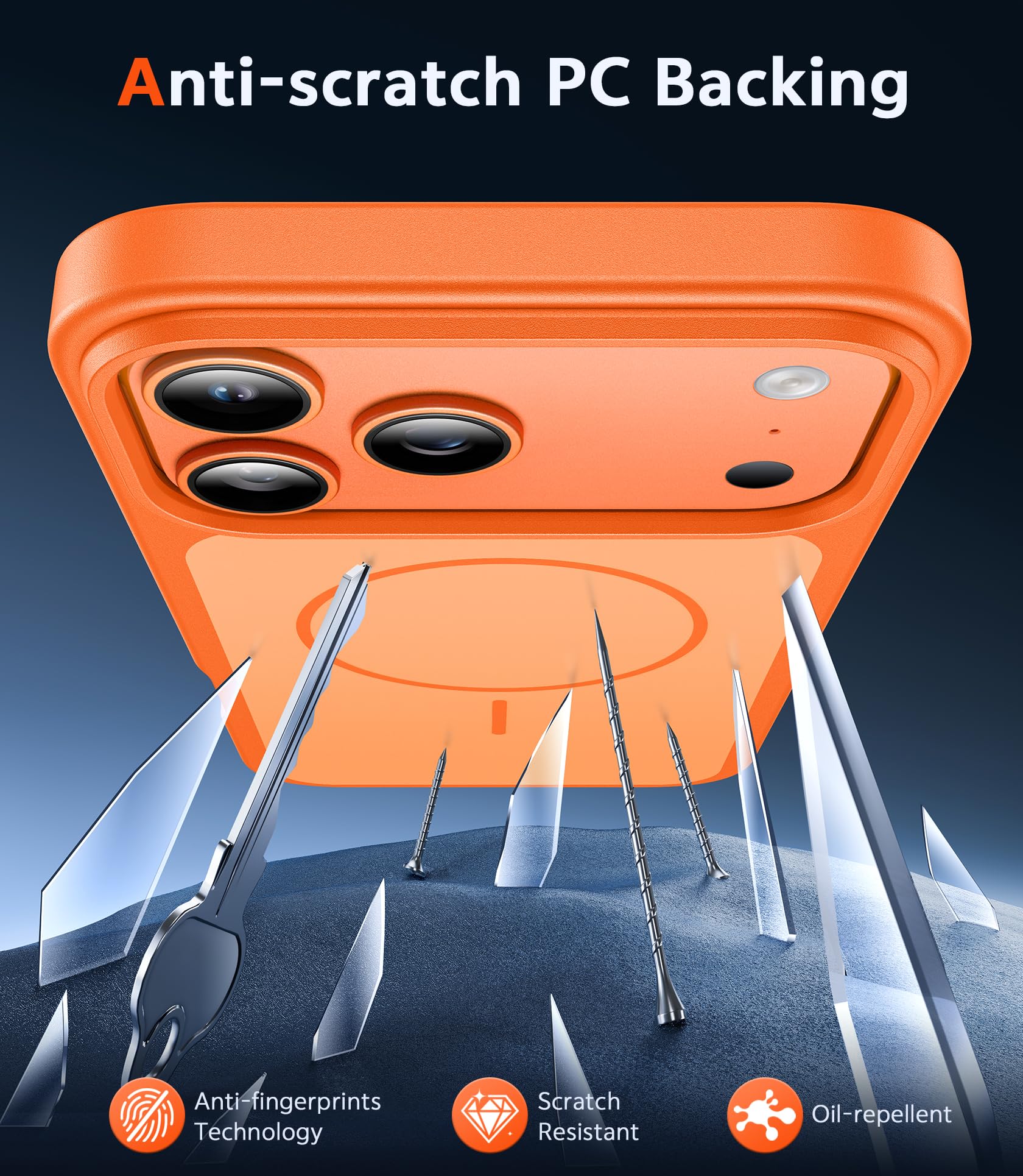 Matte Texture & Excellent Touch Feel: The iphone 17 pro max case uses high-grade matte TPU and PC material, refined and elegant beauty without obscuring the logo. The frosted surface provides you with a comfortable hand feel and the nano-antioxidant layer can effectively prevent stains and scratches