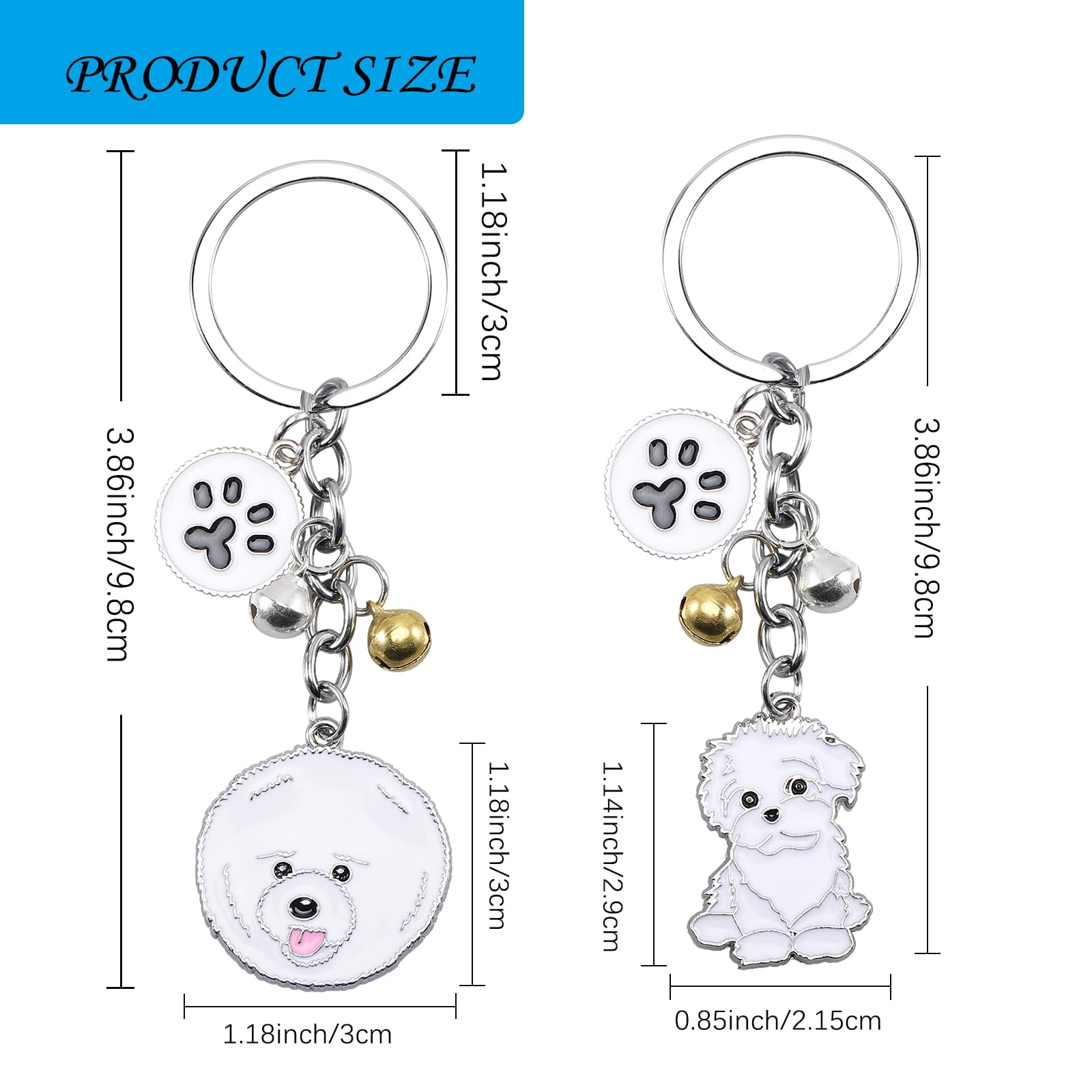 Size: These puppy keychains are approximately 3.86 inches long overall, 0.85 inches wide, and the key ring diameter is 1.18 inches.