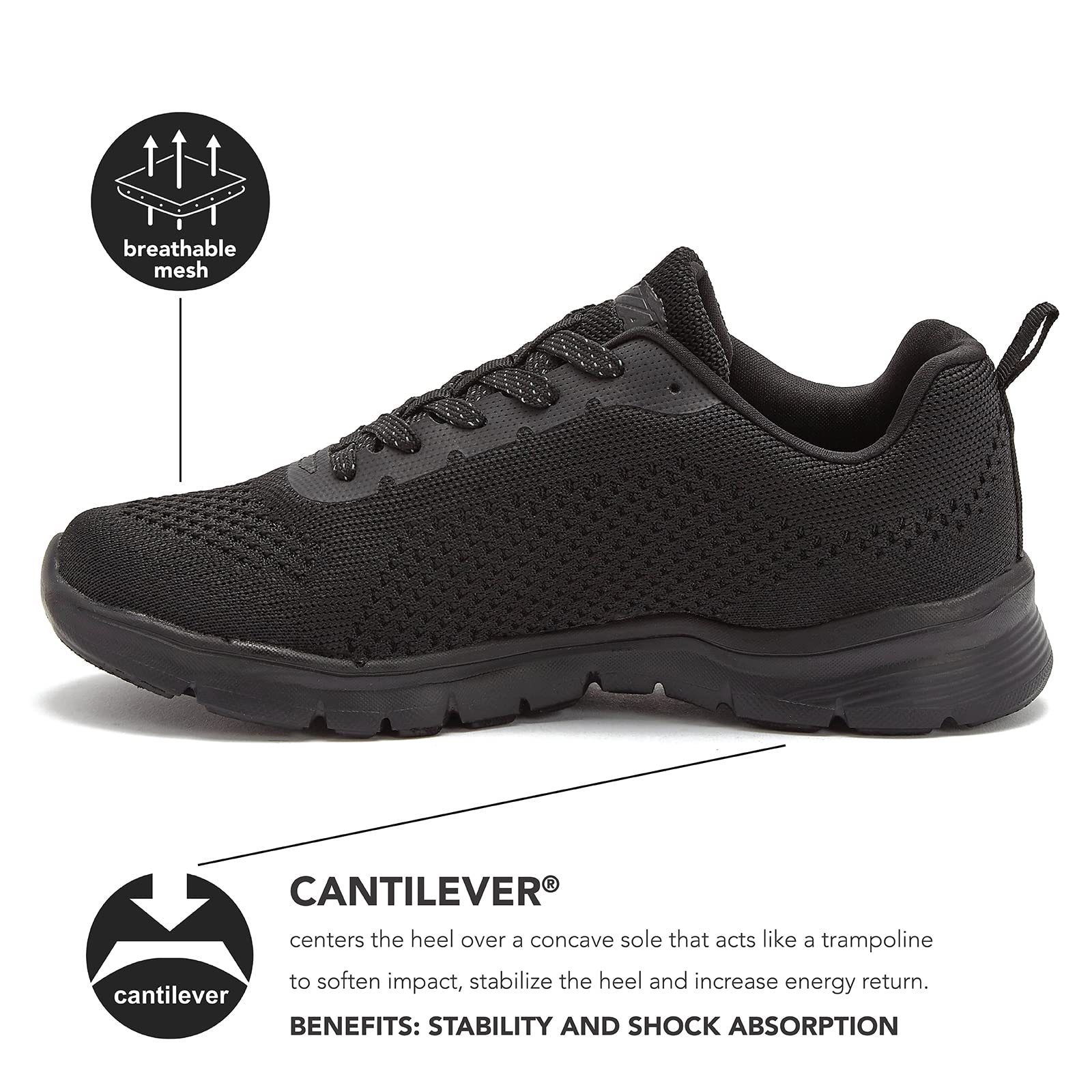 CANTILEVER FOR SHOCK ABSORPTION - The Avia cantilever technology centers the heel over a concave sole that acts like a trampoline to soften impact, stabilize the heel, cushion, and increase energy return.