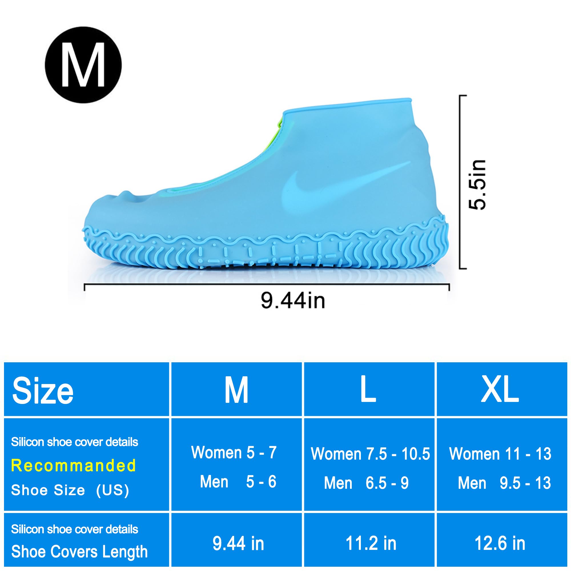 ALL-ROUND WATERPROOF, REUSABLE : Stretchable silicone And very resistant to tearing, Waterproof zipper strip design helps you to put them on and off easily,it can avoid rain or water into the shoe cover from zipper,extending the lifetime of your footwear. Waterproof shoe cover no need to take hundreds of shoe & boot covers, simple to wear silicone waterproof cover just spend one minute.