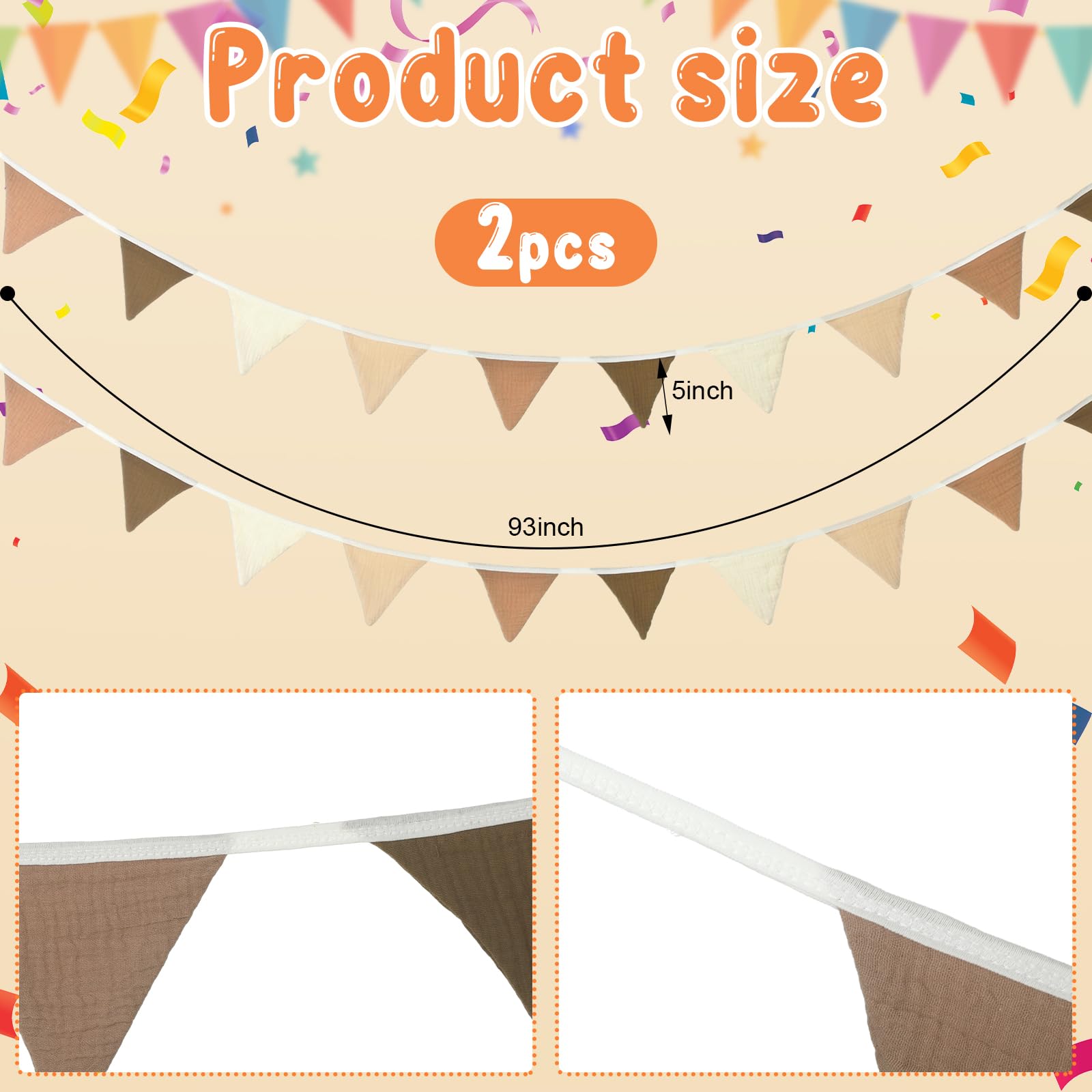 Package and Size: you will get 2 strips of garland decor, each one measures approx. 2.4 meters/7.75 feet in length, and each strip has 10 flags, enough for your decorative needs in most places
