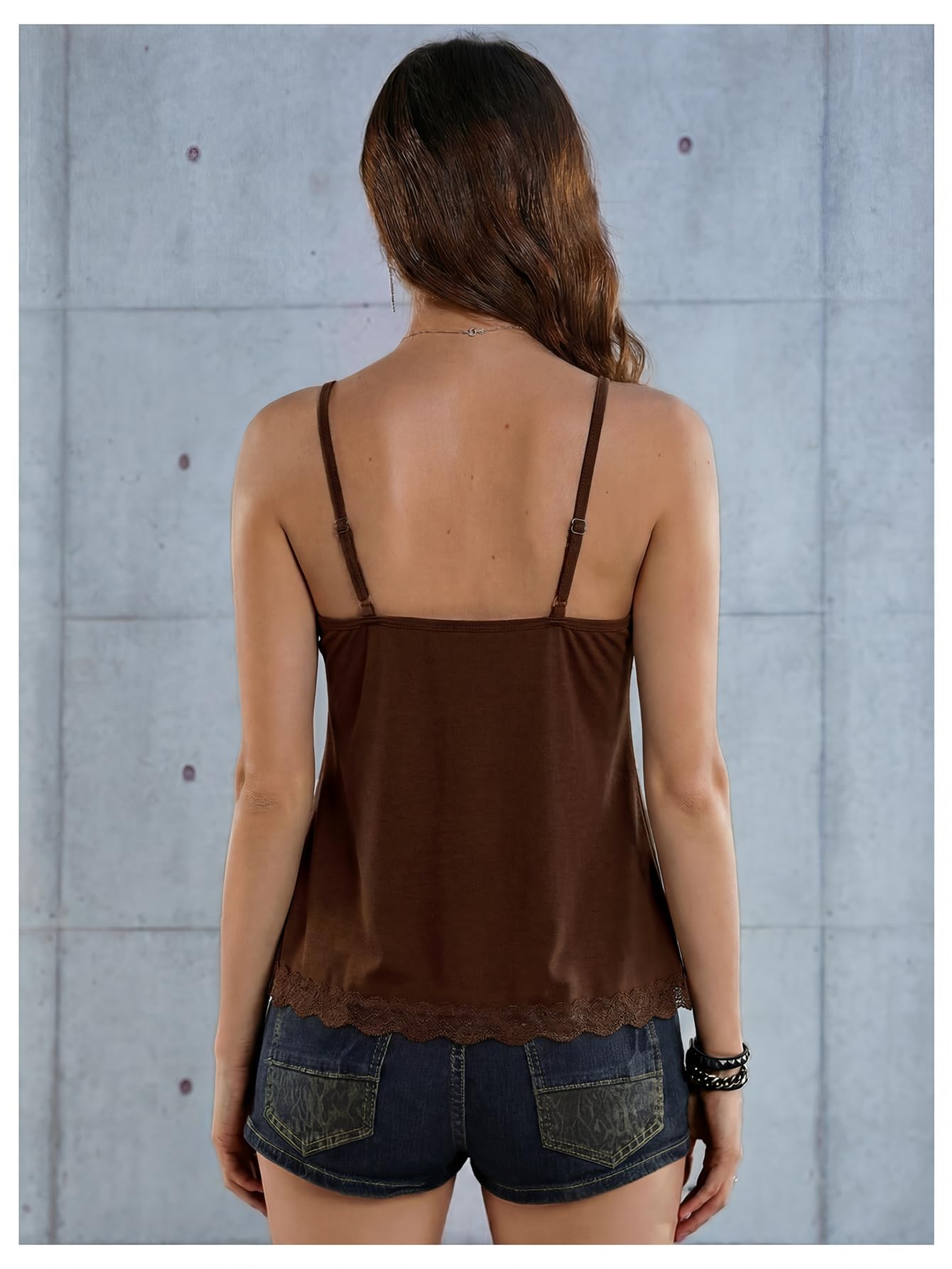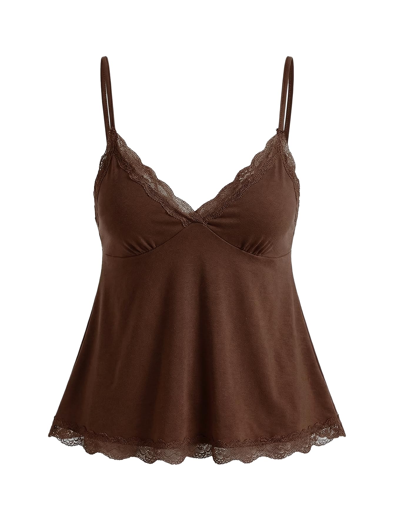 Feature: Striped print, spaghetti strap, contrast lace, flared hem, women y2k camisole, making you look casual and stylish