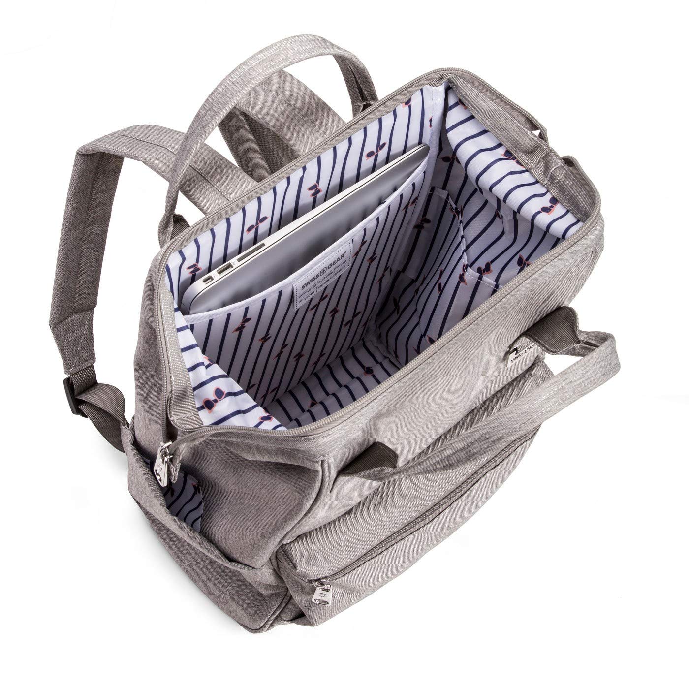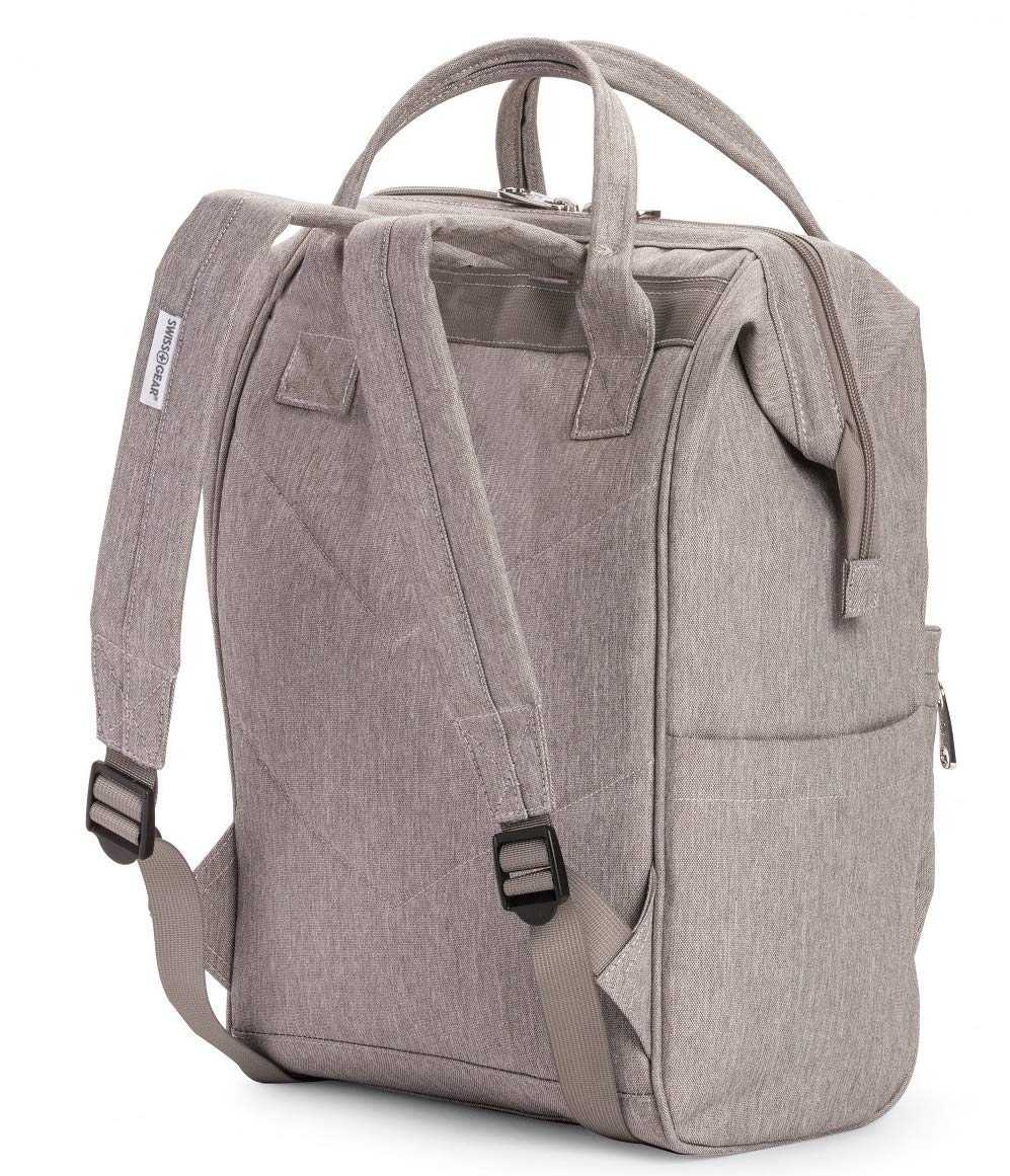For those who adore modernity, the SwissGear 3576 Laptop Backpack offers class and functionality. This vintage-style doctor's bag features a wide mouth design, making your 12" laptop easier than ever to grab. Equipped with a padded laptop sleeve, two interior accessory pockets, a hidden back panel pocket, a front organizer compartment, dual side water bottle pockets, and a trolley sleeve for travel, you've never been more ready to take on the world.