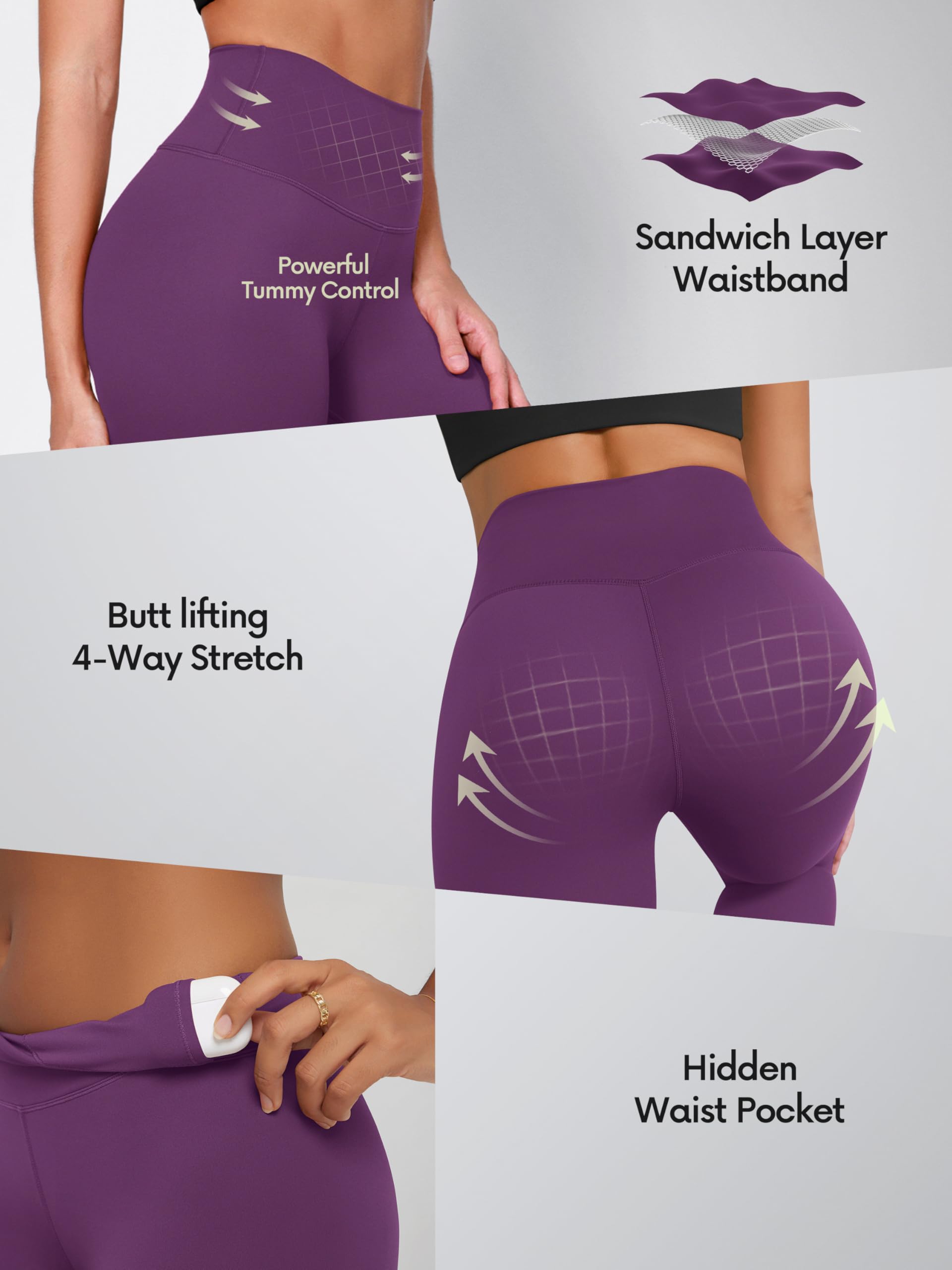 Seamless sandwich-layer waistband provides tummy control and a smooth, stay-put fit, keeping you secure and comfortable all day.