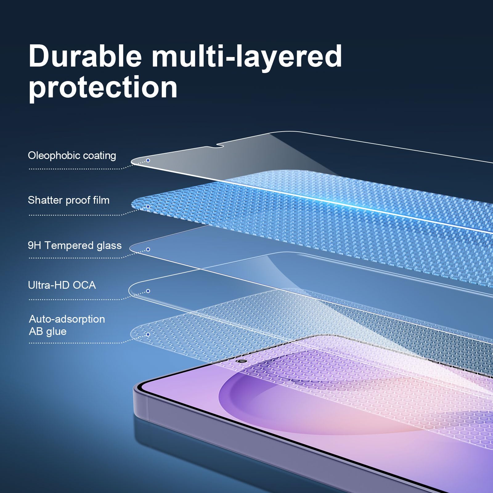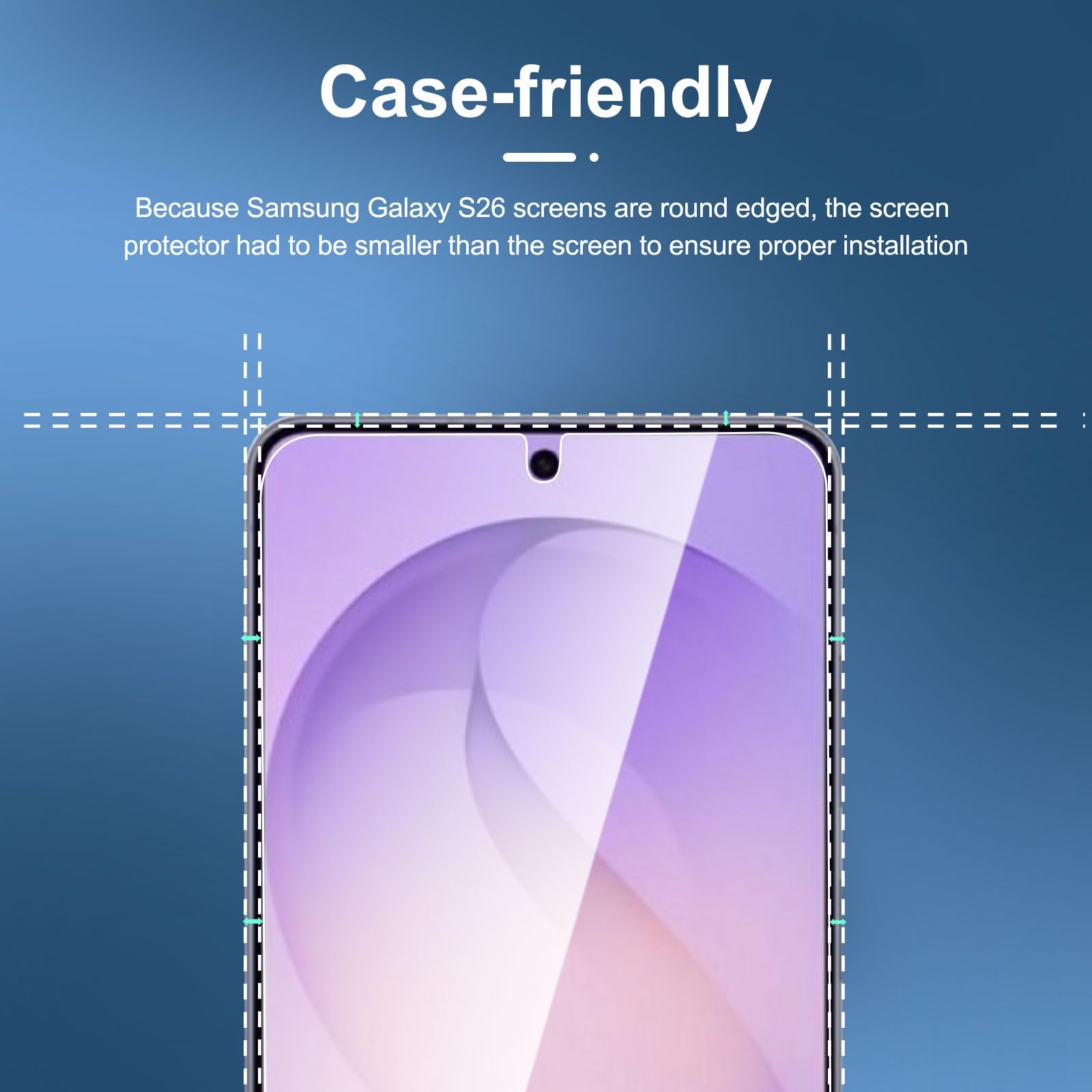 The screen protector provides the maximum protection for the Samsung Galaxy S26 touchscreen. Specifically designed Screen Protector for Samsung Galaxy S26.