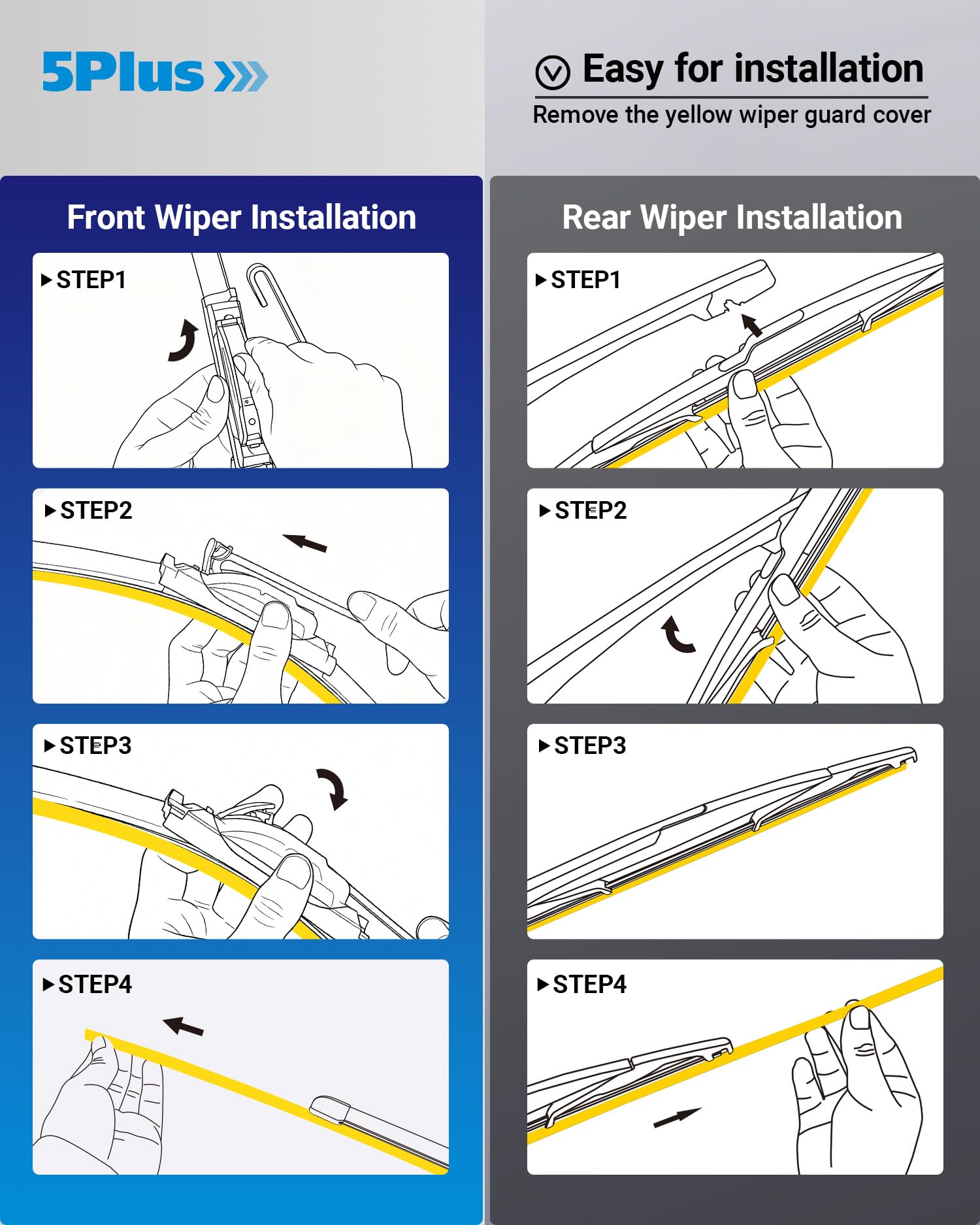 【3 PCS Windshield Wiper Set 】26 Inch Driver Side (Fit for J/U HOOK Arm) + 20 Inch Passenger Side (Fit for J/U HOOK Arm) + 14 Inch Rear Wiper Blade