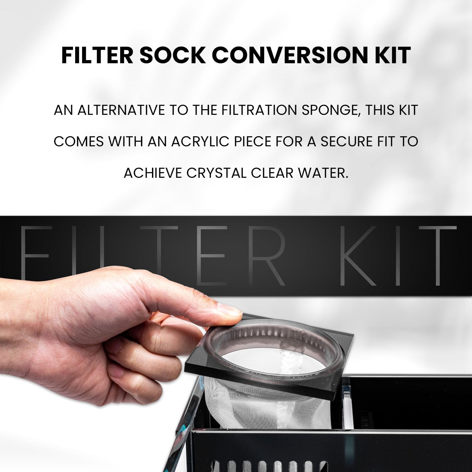 [Durable Construction] Crafted with quality in mind, the conversion piece features durable acrylic and a 200-micron mesh filter sock. This robust construction provides durable and efficient filtration for your rimless aquarium.
