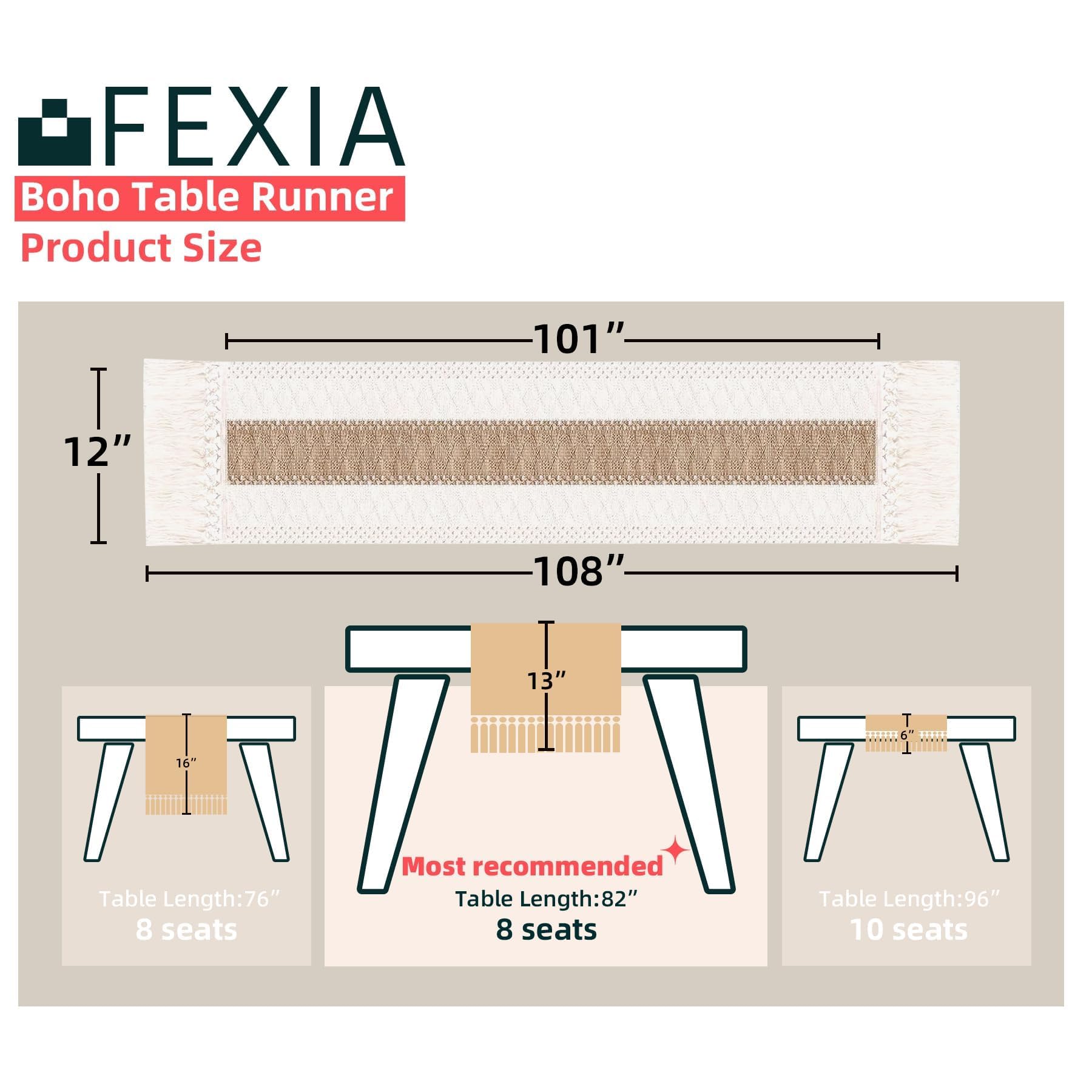 [Perfect 108 Inch Long] Our boho table runner with tassels measures 12 x 108inch, fits a dining table that seats 8-10 people. It can give your tables a rustic and boho look.