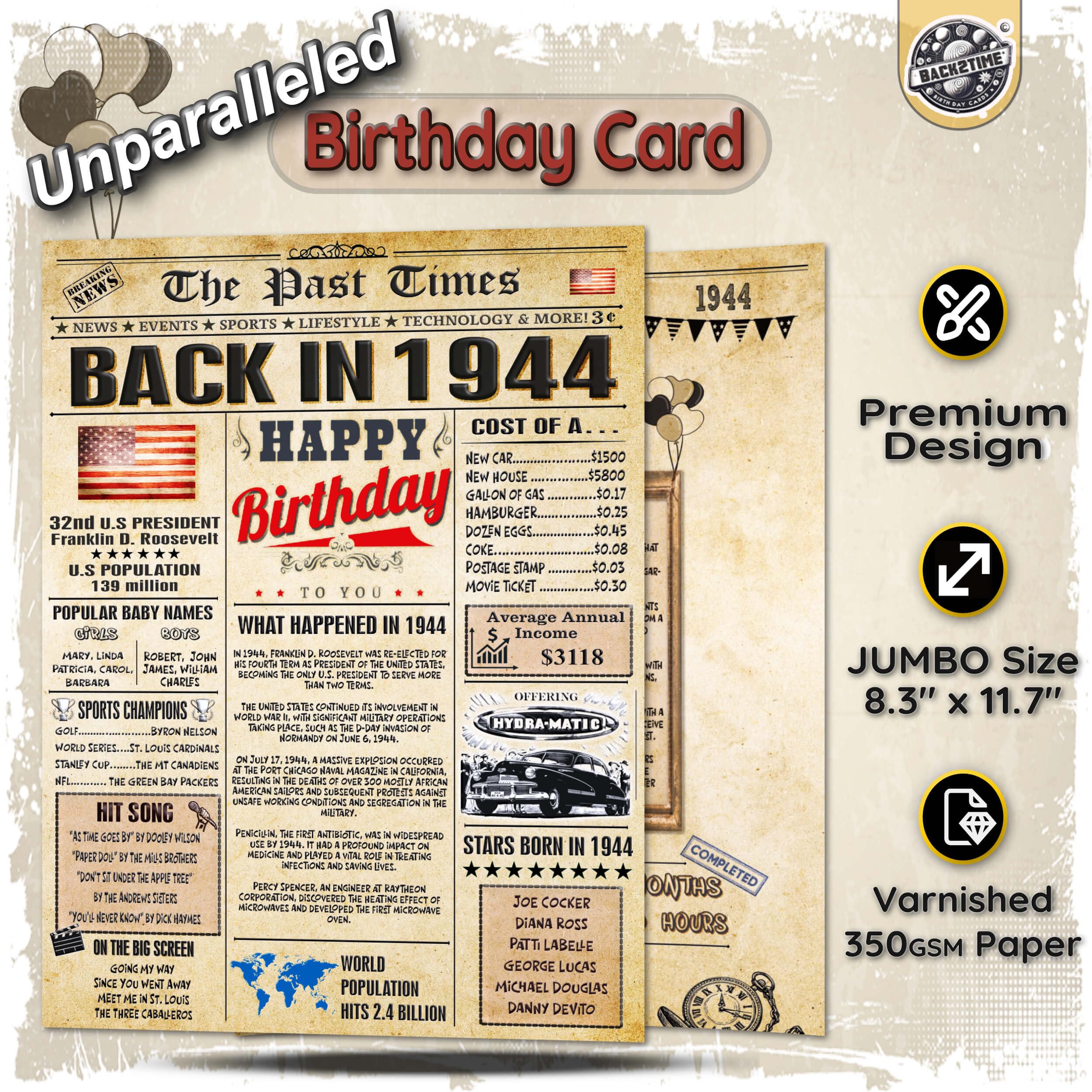 π FUNNY BIRTHDAY CARD + EXCLUSIVE ENVELOPE π Enjoy a beautifully printed Back in 1944 card that's entertaining to read, featuring a special bonus on the back with intriguing stories or lesser-known facts from that year. The interior offers space for personalized messages, designed with an aged appearance and elegant decorations to enhance the vintage feel. The included envelope boasts a unique design ideal for mom and adult born in 1944. Birthday Cards for Women, Birthday Cards for Men.