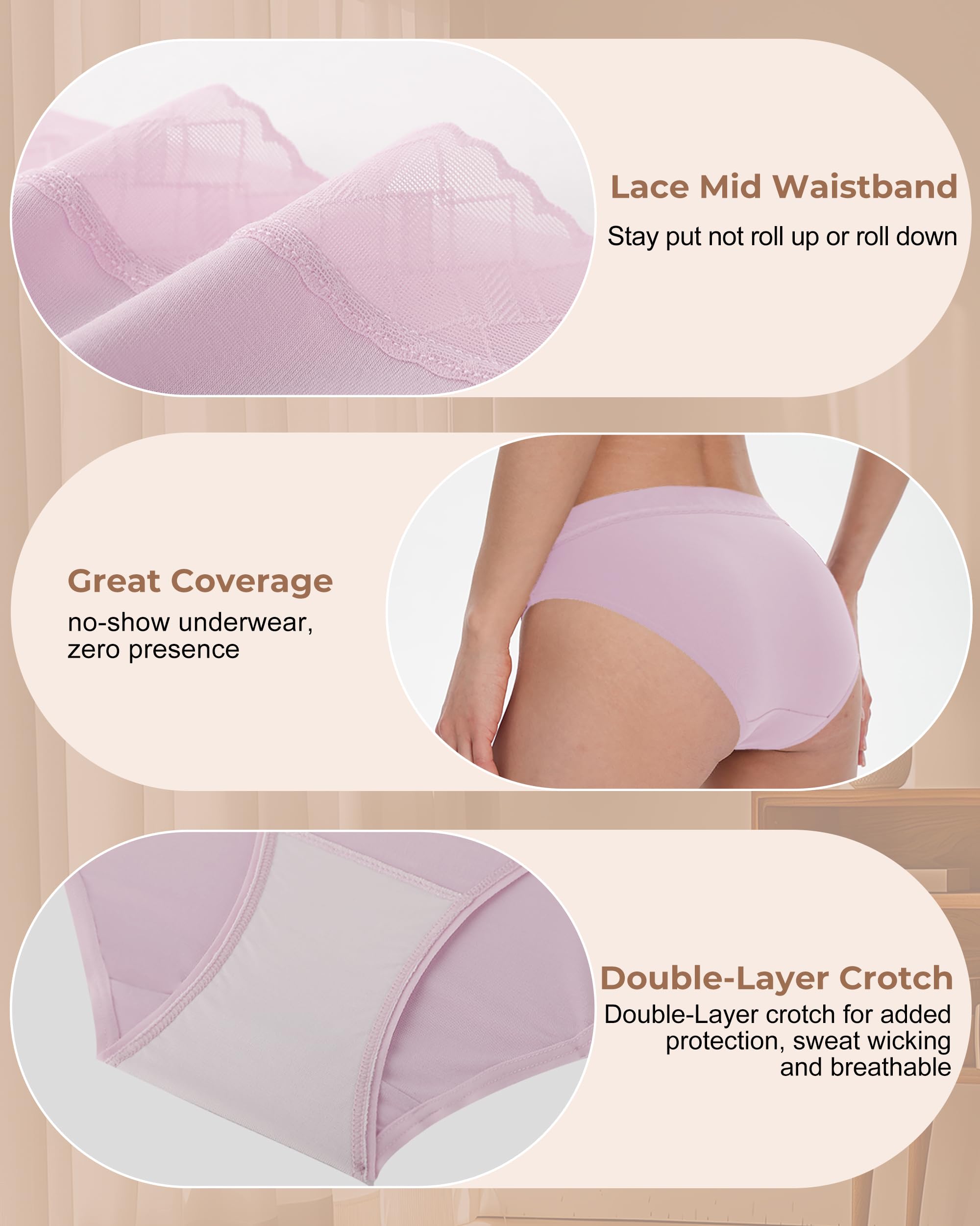 DESIGN FEATURES - The women underwear adorned with the soft lace waistband with fashion elegance. The delicate flower pattern elastic waistband does not put any burden on sleeping and daily leisure, it is well fixed but not too strangled. Enjoy these women lace Briefs that combine sexy softness and comfort.