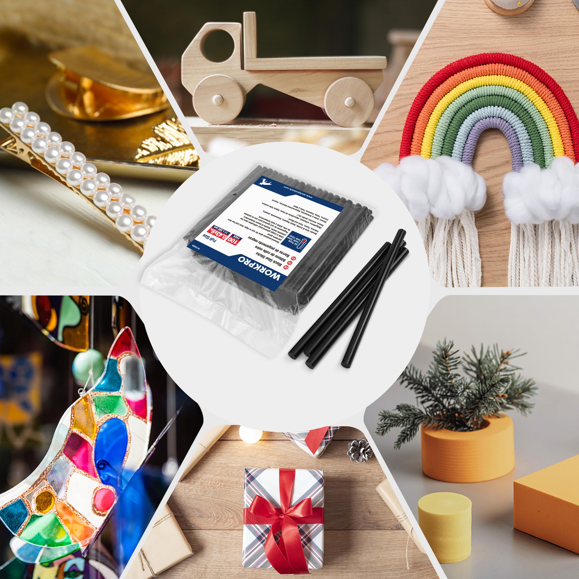 100 PCS Full Size Sticks: Comes with 100 packs of black hot melt glue sticks for most repair use, 0.43" diameter x 8" length full-size hot glue stick fits most glue guns on the market